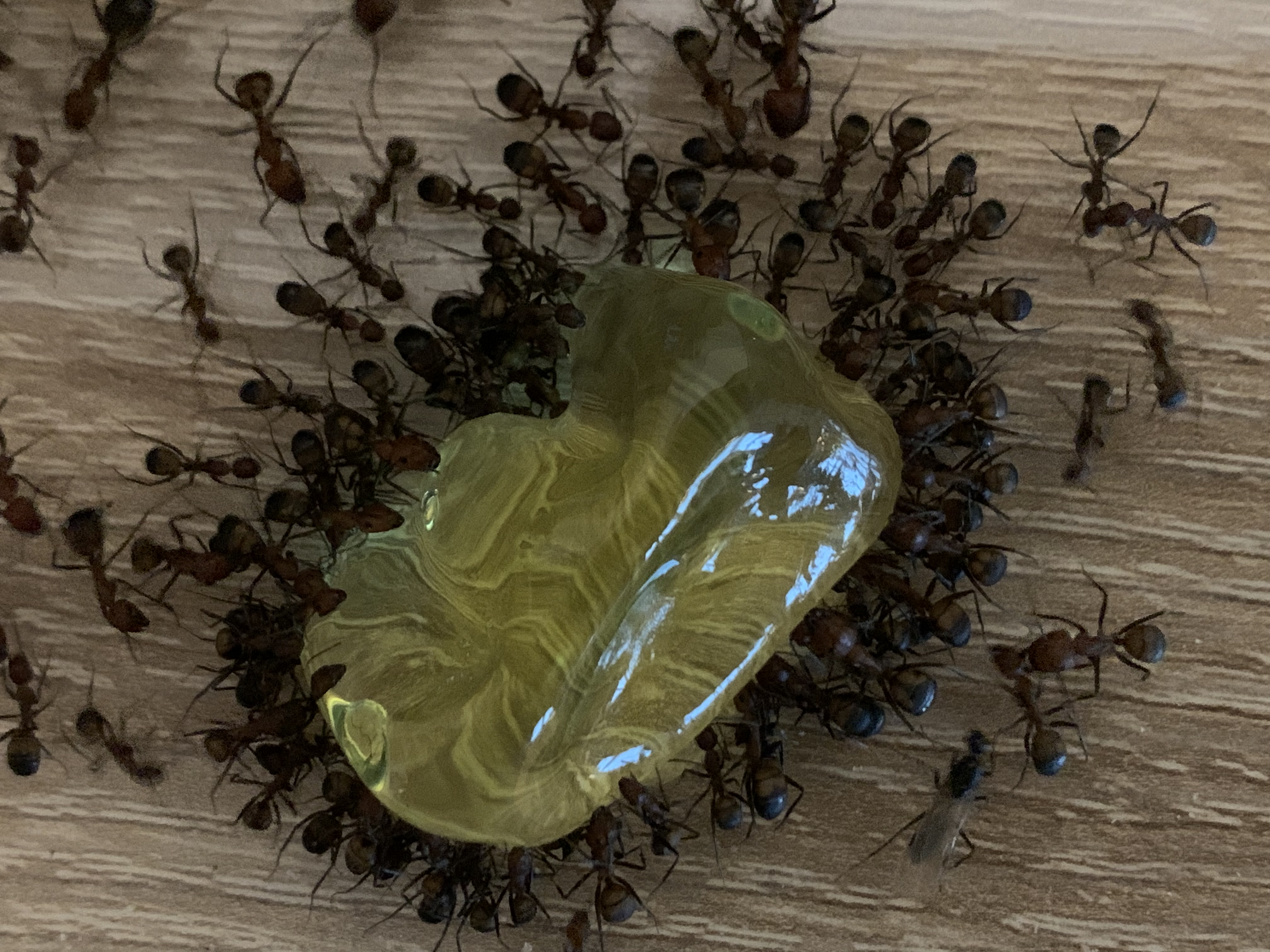 Am 15. September habe ich im Haltungsbericht von @PincoPallino geschrieben, dass ich noch ein Futterexeriment am laufen hätte. Das ging total daneben, ich habe meinen Camponotus nicobarensis ein Gummibärchen gegeben. Es lief nicht so ab wie ich mir das vorgestellt hatte.