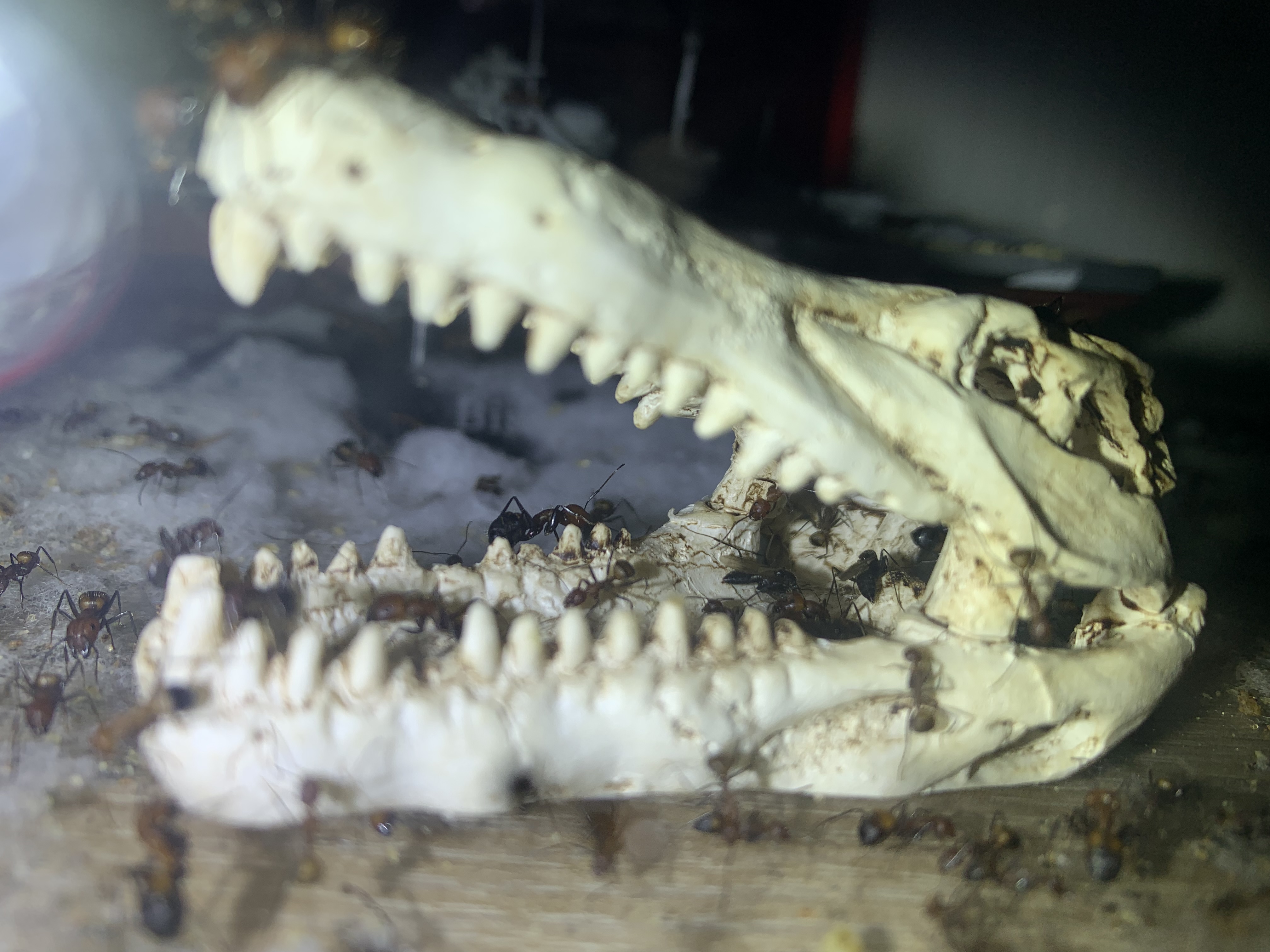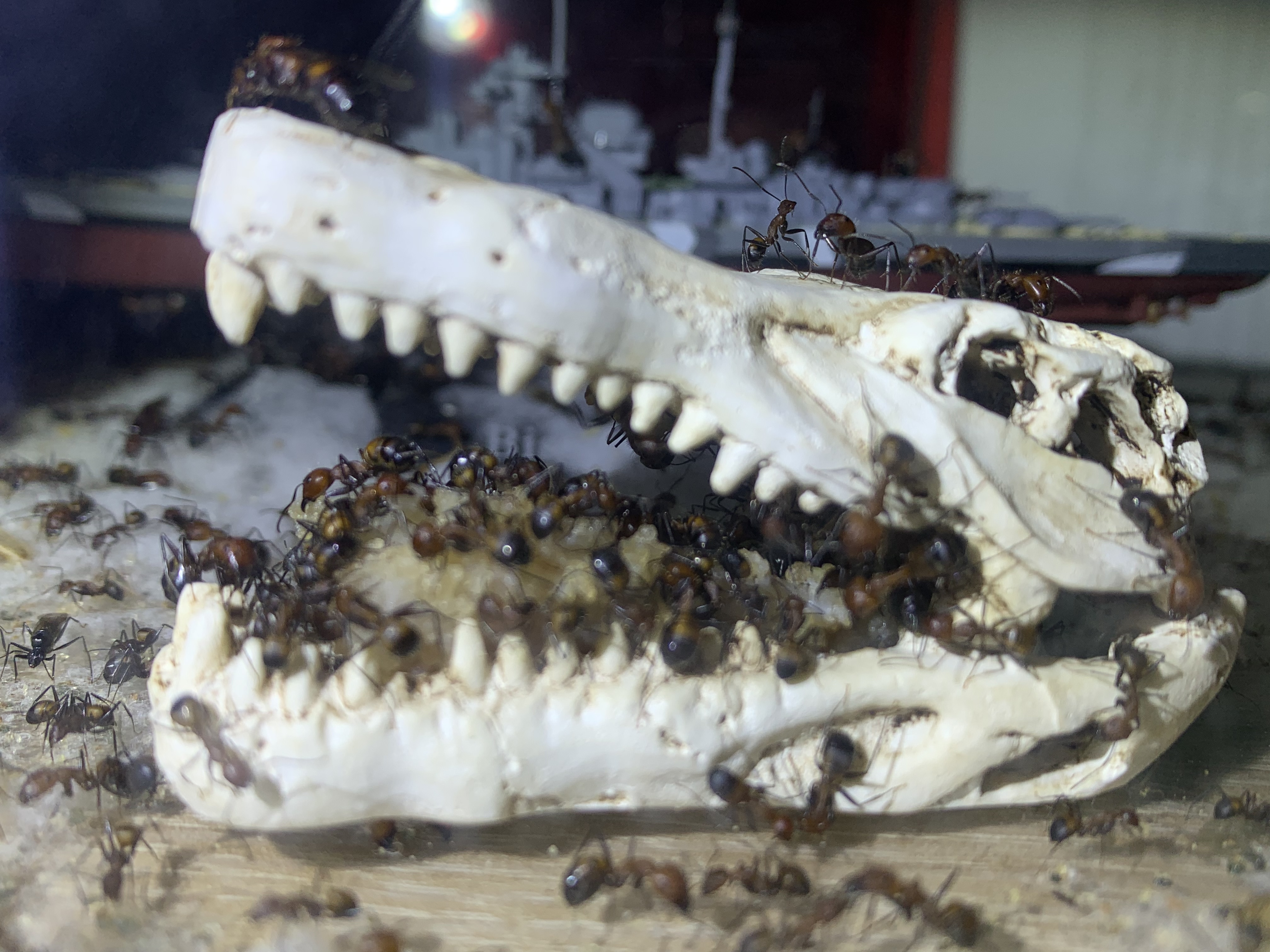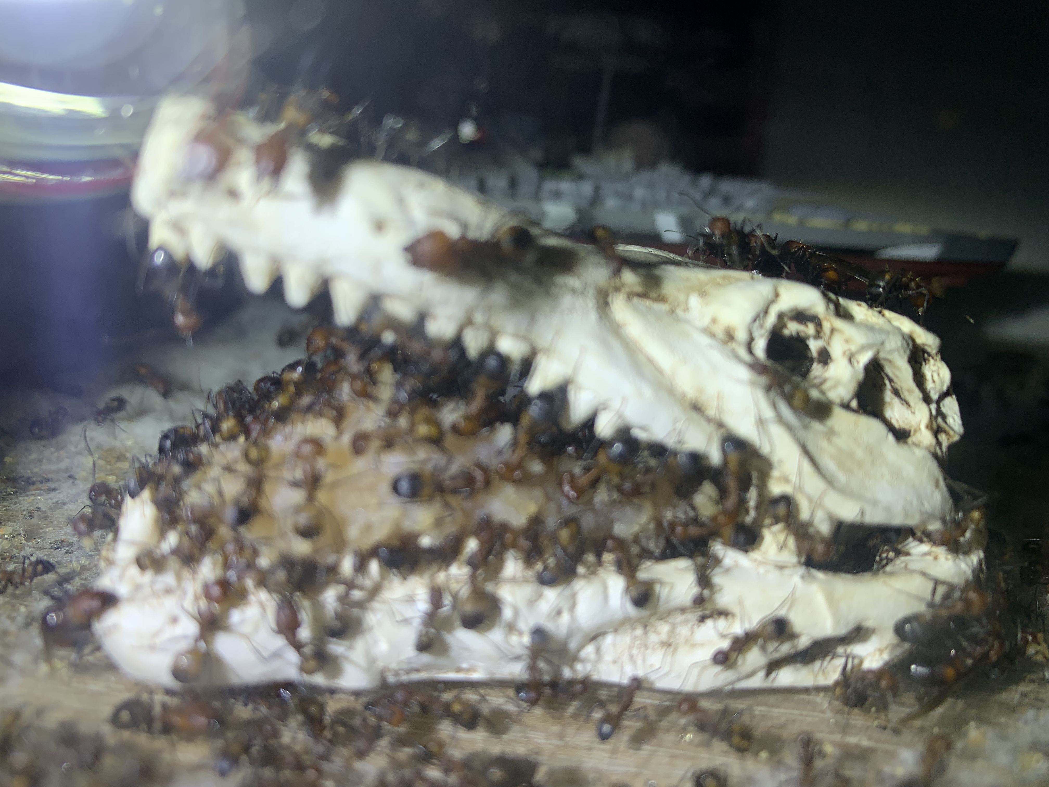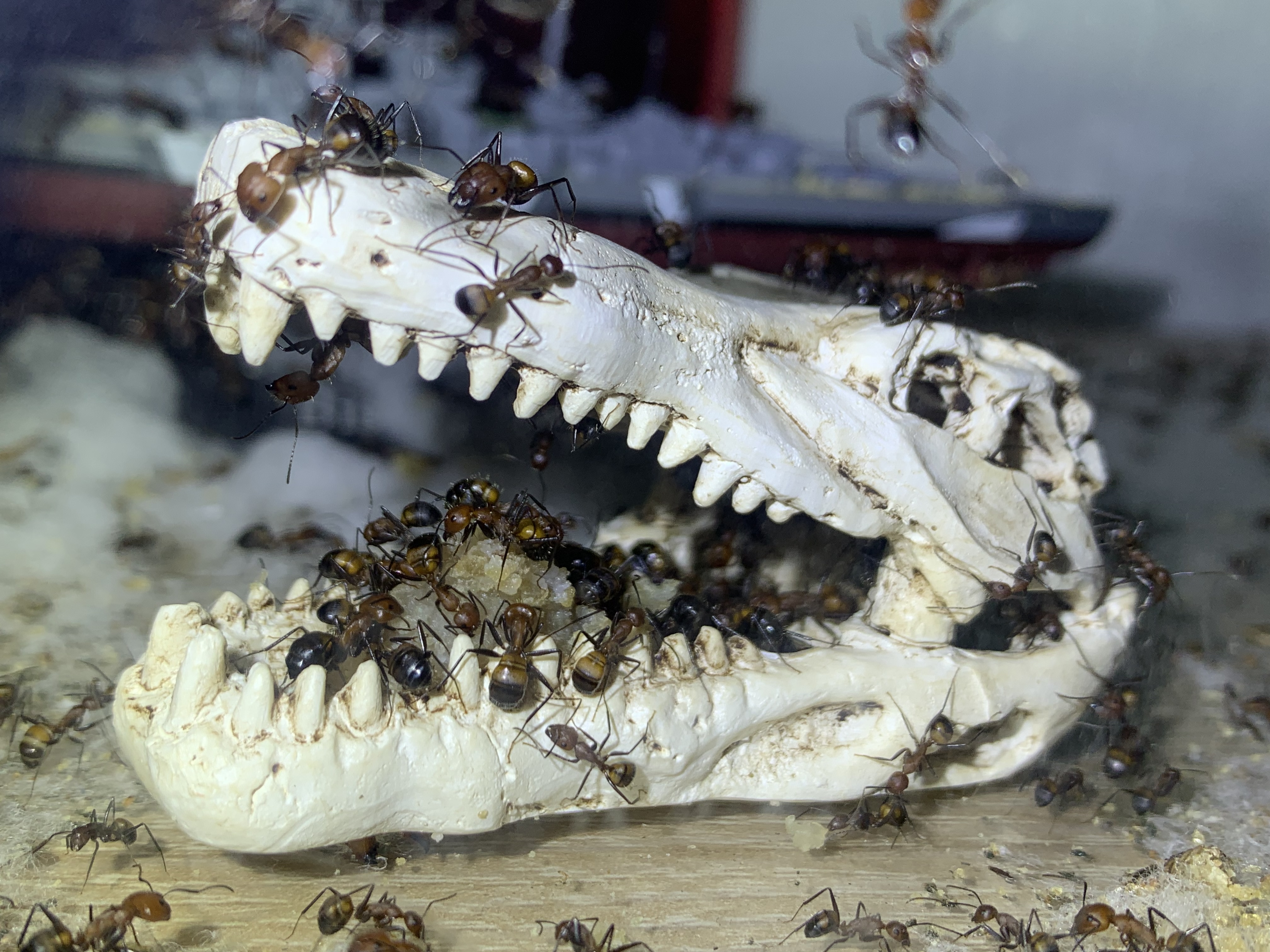 Eigentlich müsste Fleisch ja so irgendwann zu stinken beginnen, tut es aber bei meinen Camponotus nicobarensis nicht. Es kann allerdings auch sein, dass das bei den Ameisen nicht stinkt, weil sie es so sehr zerkleinern das letzte bisschen Flüssigkeit „rausgetrunken“ werden kann und es darum nicht mehr stinkt weil die mikroskopisch kleinen Fleischfäserchen soetwas wie konserviert/mumifiziert ist!