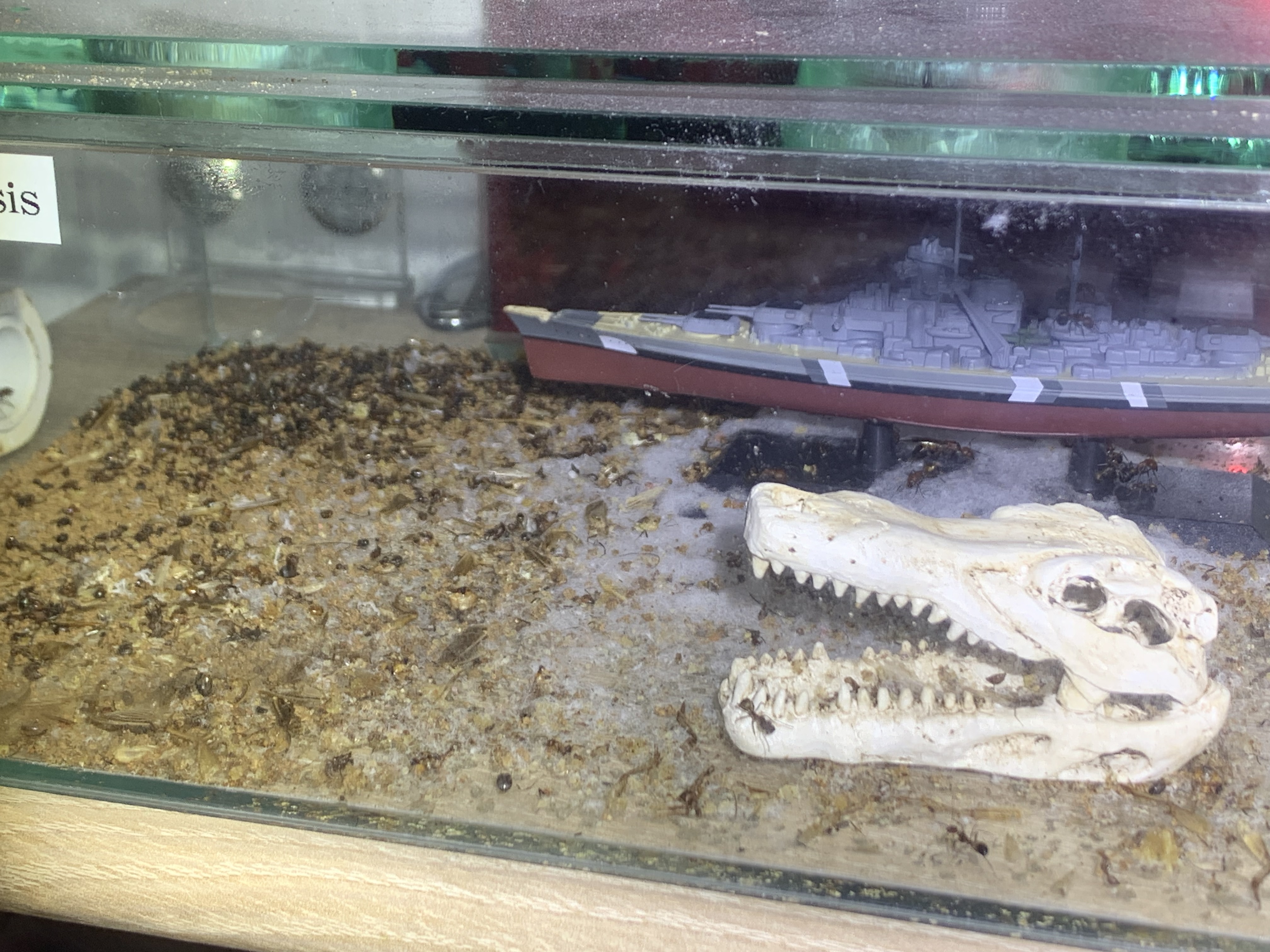 Kann aber auch einfach Zufall sein, da die Diacamma prinzipiell nicht ganz so alt werden wir z. Bsp die Camponotus. Und da auch immer 3-4 auf Mal schlüpfen kann es natürlich auch sein, dass die dann zeitnah hinereinander sterben. Bisher haben sich die neuen Kolonien Mitglieder und die verstorbenen gut im Mass gehalten und von der Anzahl her wäre die Kolonie in der Natur auch bereits ausgewachsen...