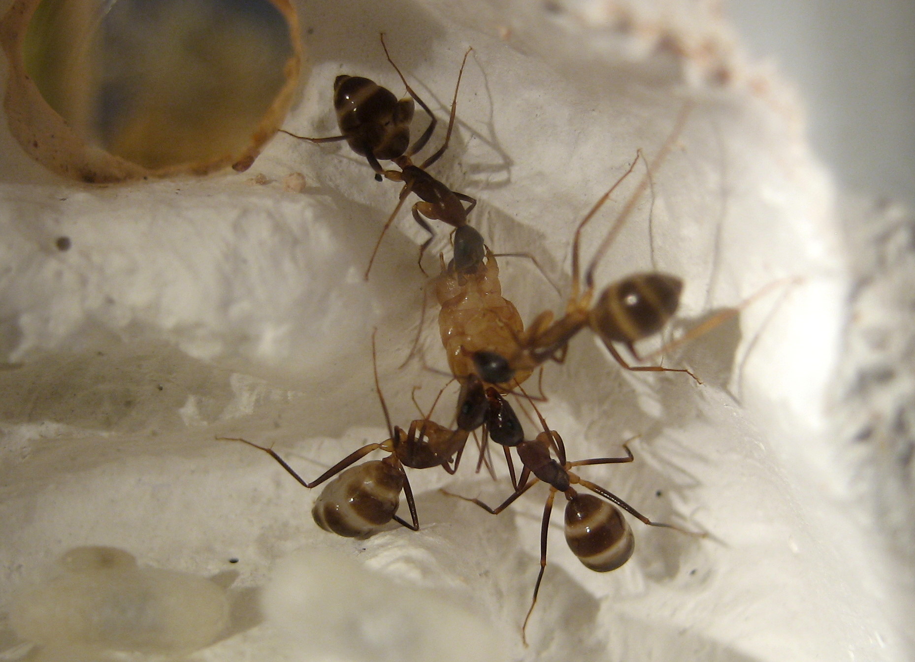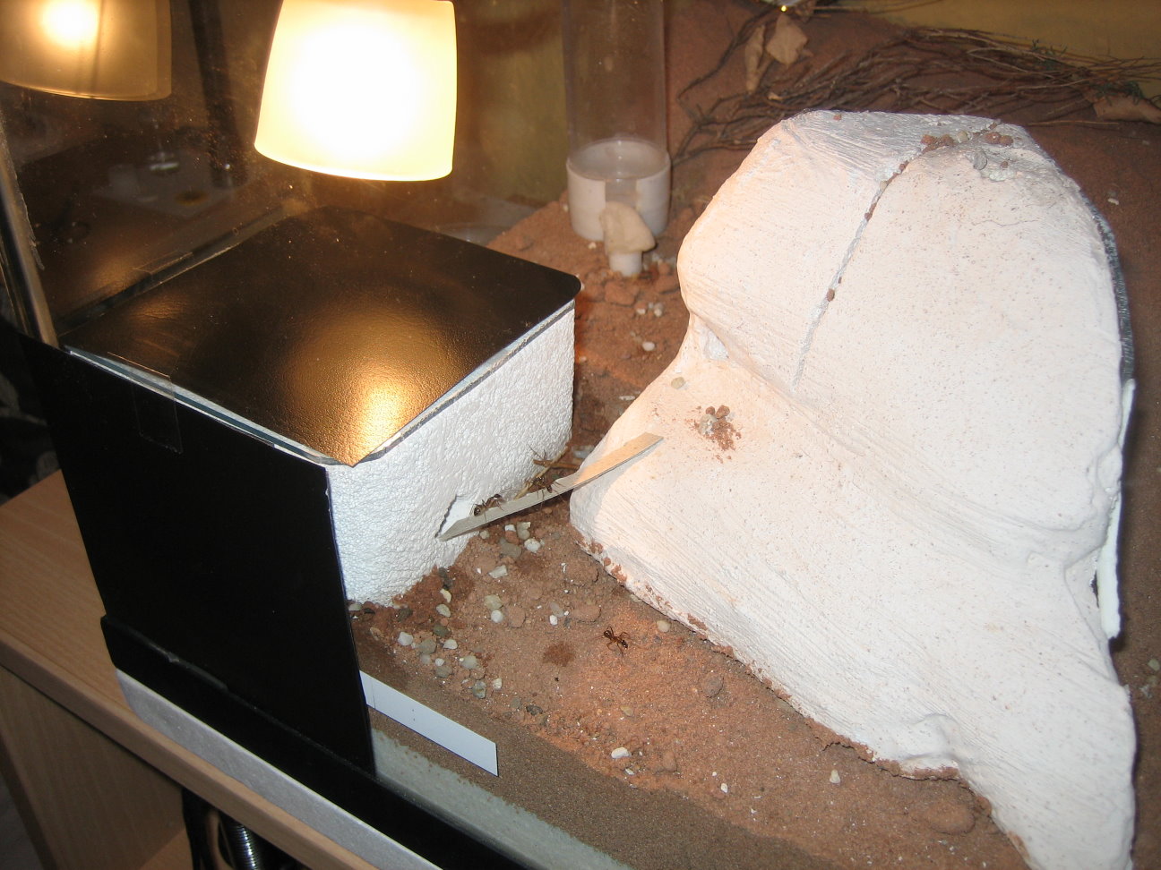 - Diese Woche stand wieder ein Umzug an. In ein Nest, welches eine bessere Kontrolle der Haltungsparameter versprechen soll. Die Kolonie ist nach etwa 5 Stunden ohne Zwischenfälle umgezogen. Mehr zum Umzug und dem neuen Nest, so wie Bilder, findet sich HIER (Klick).