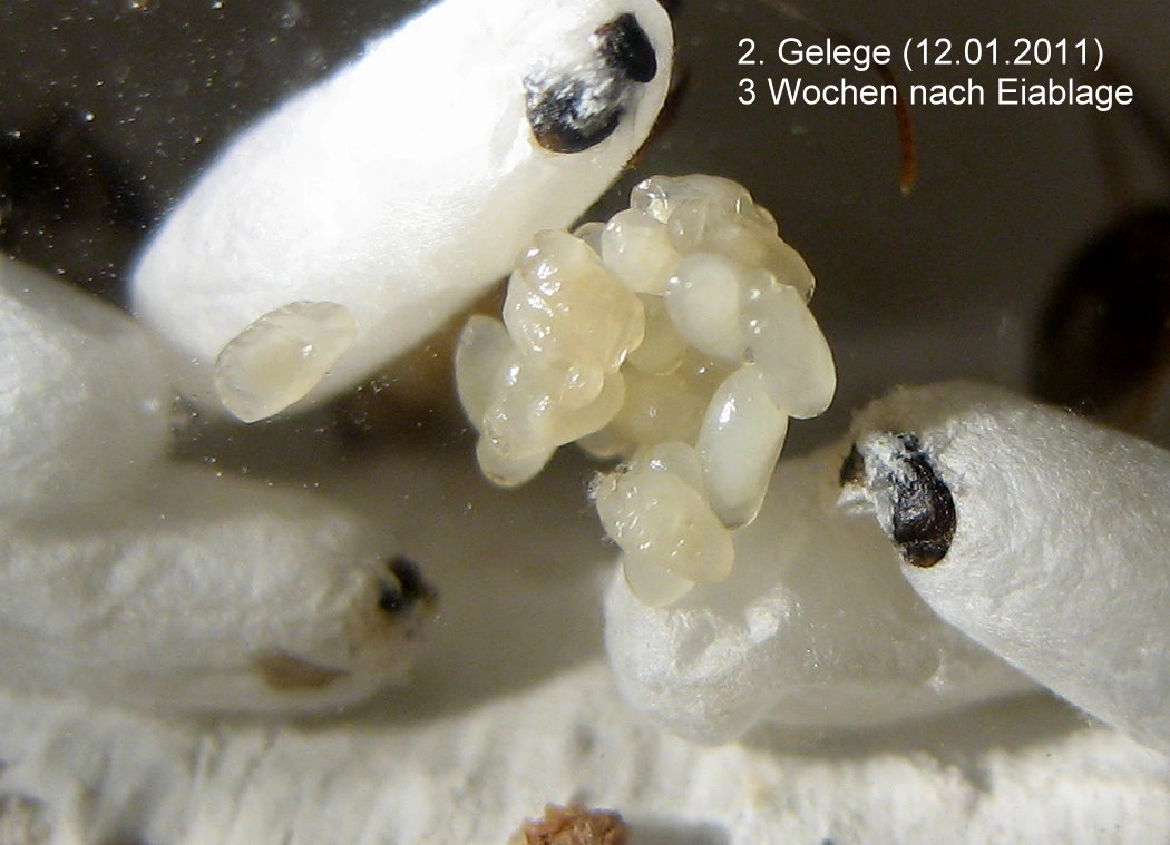 Der Grund, warum es solange gedauert hat, bleibt immer noch offen. Die Winterpause dürfte es aber wohl nicht gewesen sein. /edit-2011-02-03: Der Grund wird wohl der sein, dass die Gyne einen zwei-monatigen Legezyklus hat.