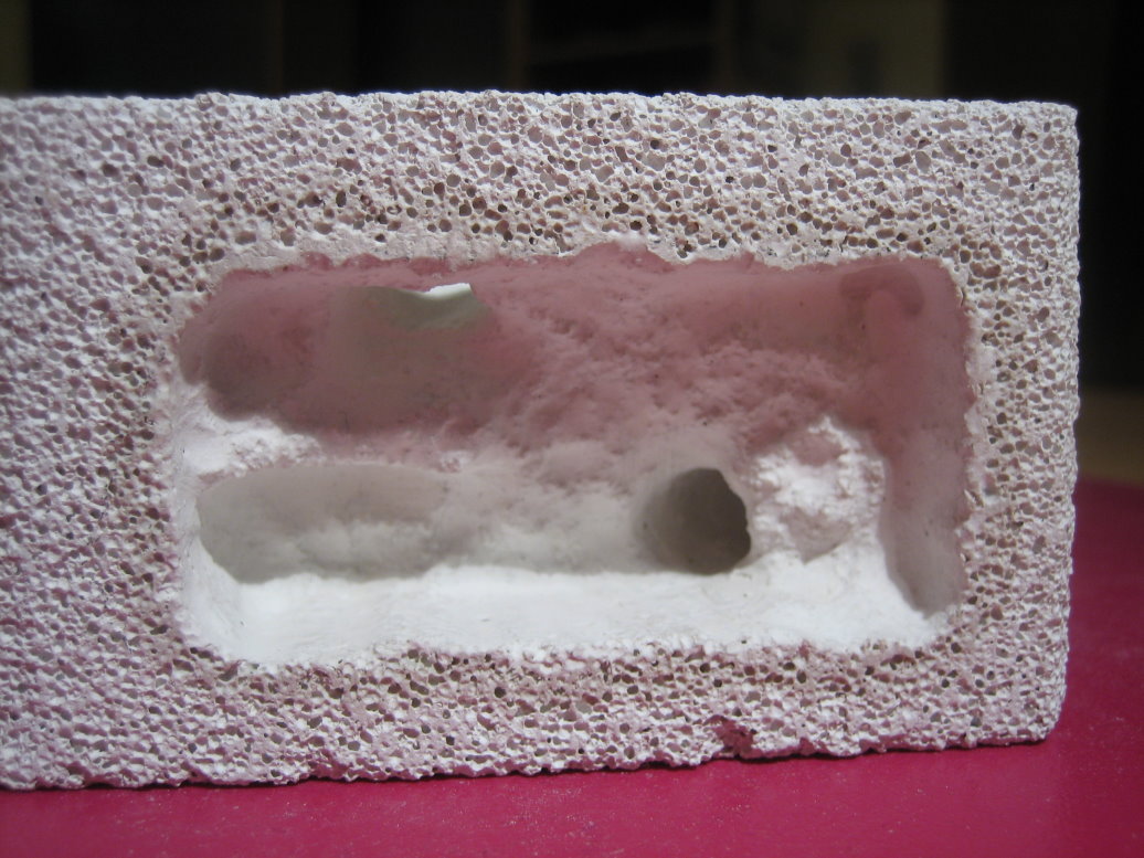 - Mit dem neuen Nest konnte ich gleich einen Tipp (schwarzer "Stein") von fehlfarbe umsetzen. Damit das Ytongnest (10x10x5 cm) besser erwärmt werden kann, wurde es flach (1 cm) und mit einer größeren "Lagerfläche" konzipiert (9 "oben"). Die zwei Kammern an der Seite dienen als Ausweichmöglichkeit (7 "links"), (8 "rechts"). Der Einblick von oben erlaubt zudem eine bessere Übersicht über die Ameisen und kommt auch bei Laien (Eltern) gut an