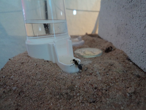 Ich möchte die Tiere zurzeit nicht groĂ stören, deswegen gibt es nicht viele Bilder. Der Ausenbereich ist in dem kleinen Becken schlicht gehalten nur Sand keine Deko nix. Eine WassertrĂ€nke und eine Schale fĂŒr Zuckerwasser.