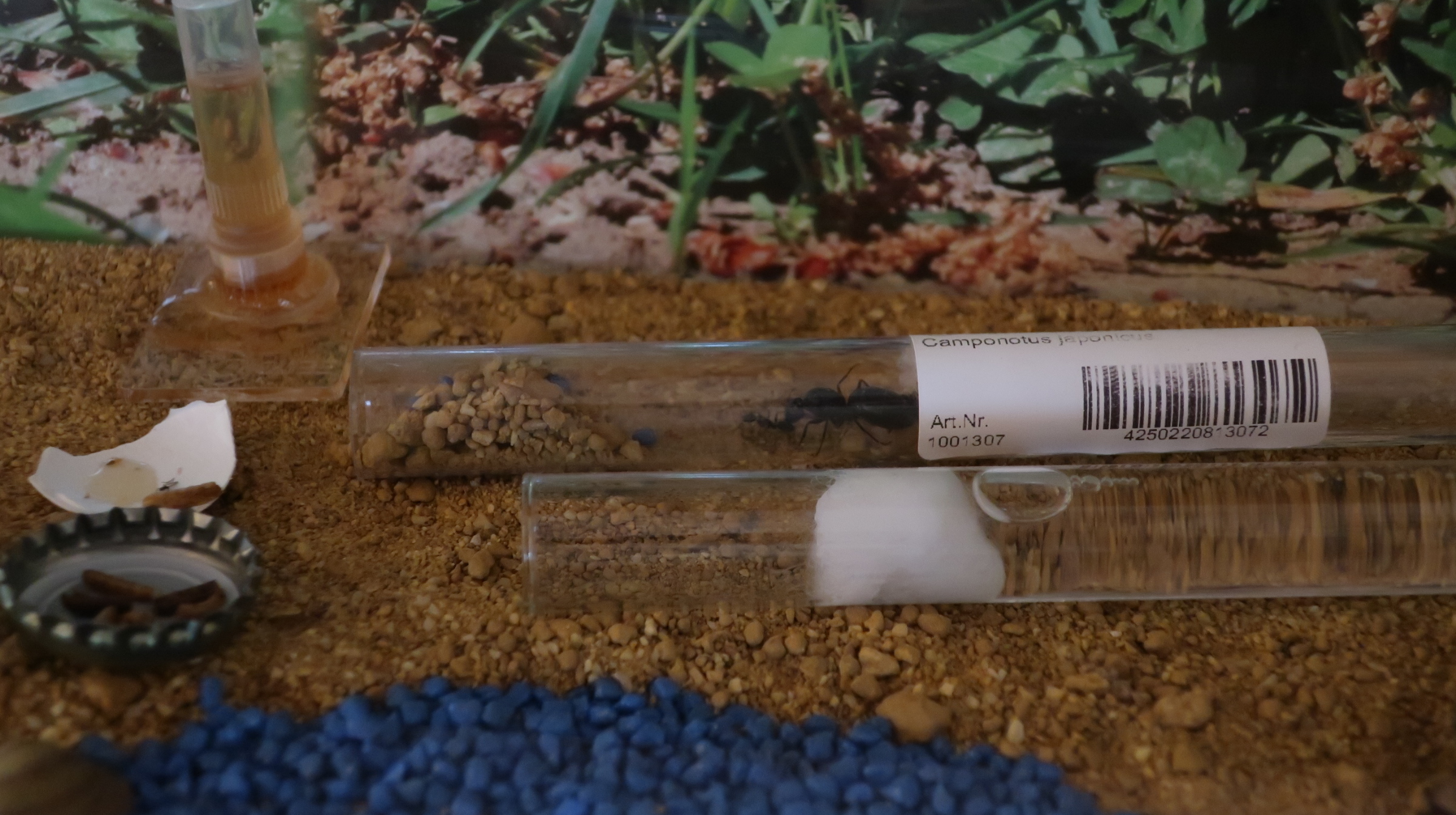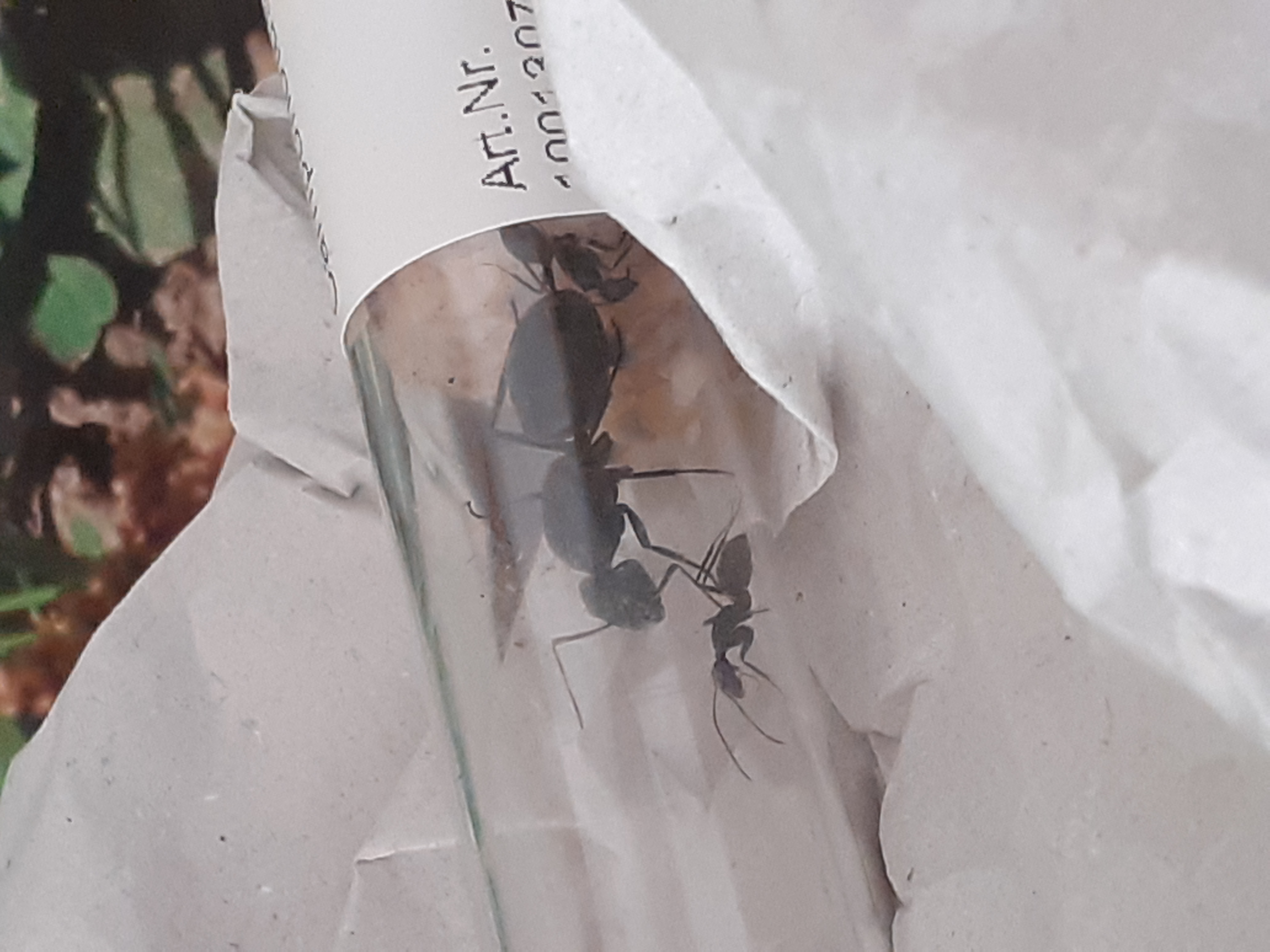 Aber zum Thema Vibrationen. Mir ist aufgefallen, dass Ameisen lichtempfindlich sind. Das hat sich sicherlich schon rumgesprochen. Genauer gesagt bin ich des Glaubens, Ameisen würden lediglich auf Lichtwechsel reagieren. Noch genauer auf plötzliches Hellerwerden. Gegen den Lichtschreck beim Reinschauen ins Reagenzglas kann man also vorbeugen, indem man seine Kolonie langsam an Umgebungslicht gewöhnt und nur vor direktem Sonnenlicht und direkter Zimmerbeleuchtung abgeschirmt. Ich nutze dafür ein Stück Rinde.