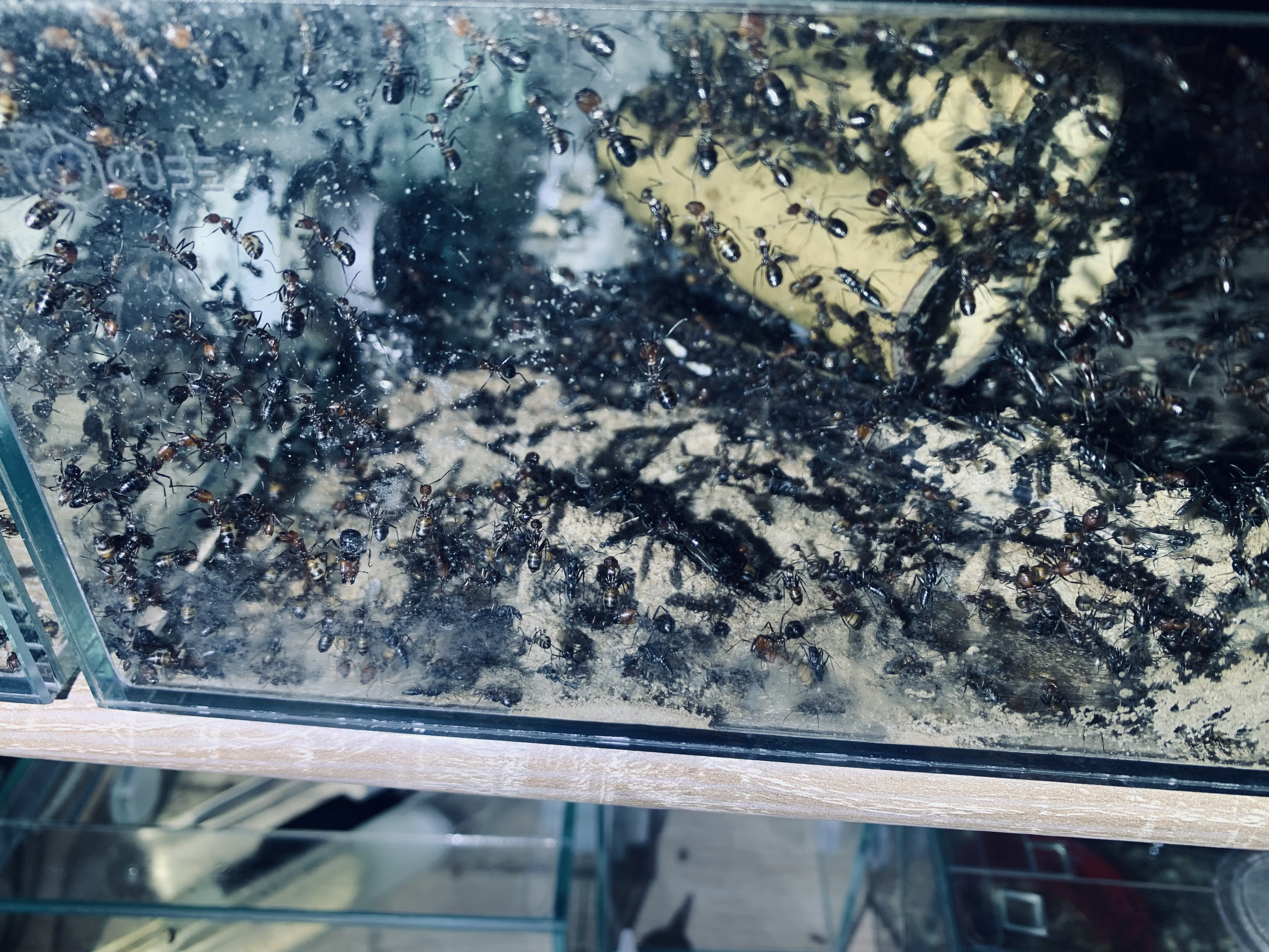 Ich bin gestern Nacht aus dem Urlaub zurĂĽckgekehrt und war ĂĽberrascht als ich einen Blick auf meine Camponotus nicobarensis - Kolonie warf.