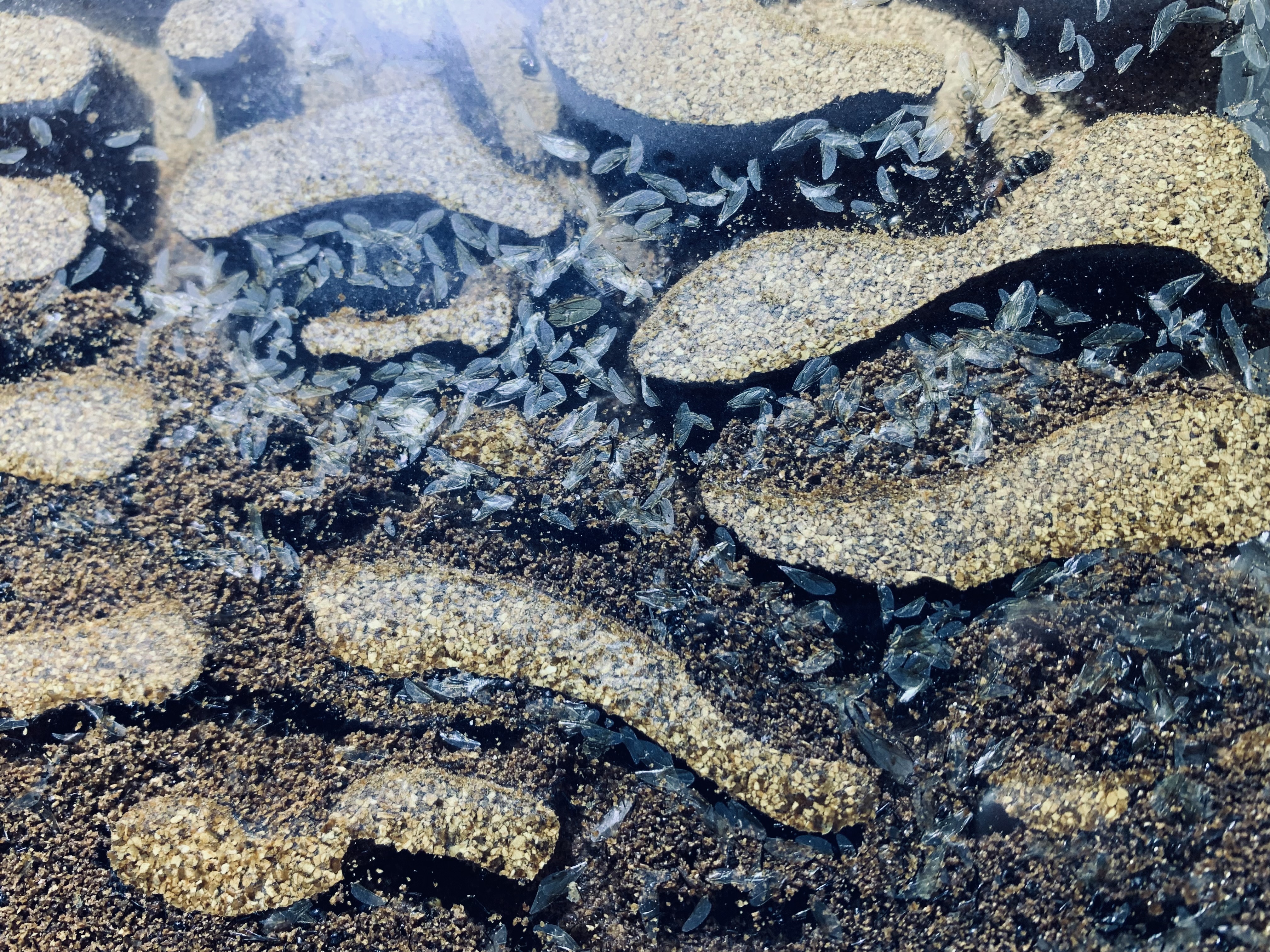 Ich habe die Futterarena und die Getränkearena lange nicht mehr geputzt, wollte einfach wie bei der Schrimpsröhrchenarena die „Natur walten“ lassen. War wohl ein bisschen ein Fehler, aber nicht wegen dem Ameisensterben.