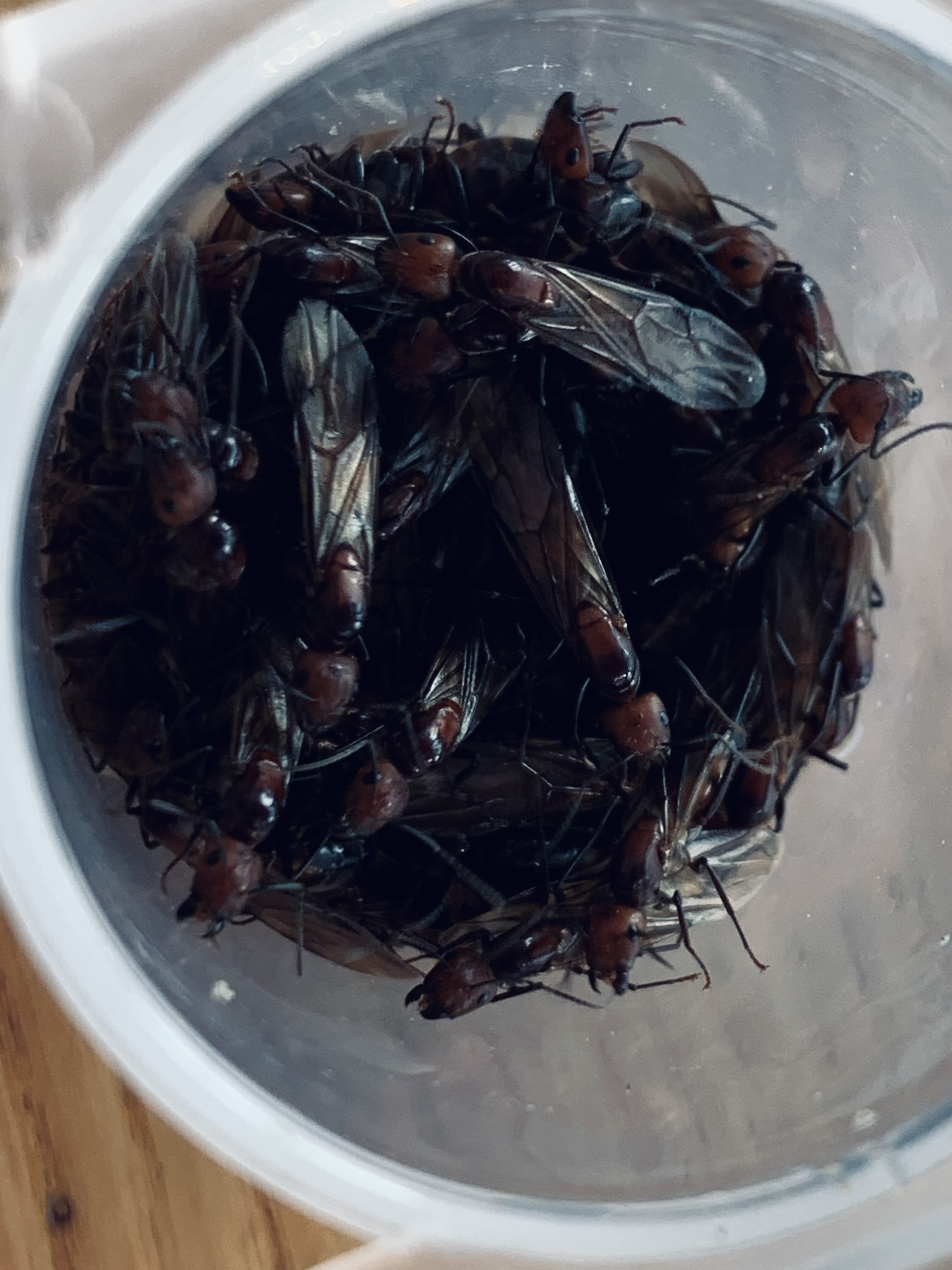 Die Jungköniginnen die ich eingesammelt haben sind zum sterben verdammt, auch wenn es mir leid tut. Das ganze Potential, die ganzen Kolonien die sich daraus hätten entwickeln können, es tut mir jedes Mal leid!