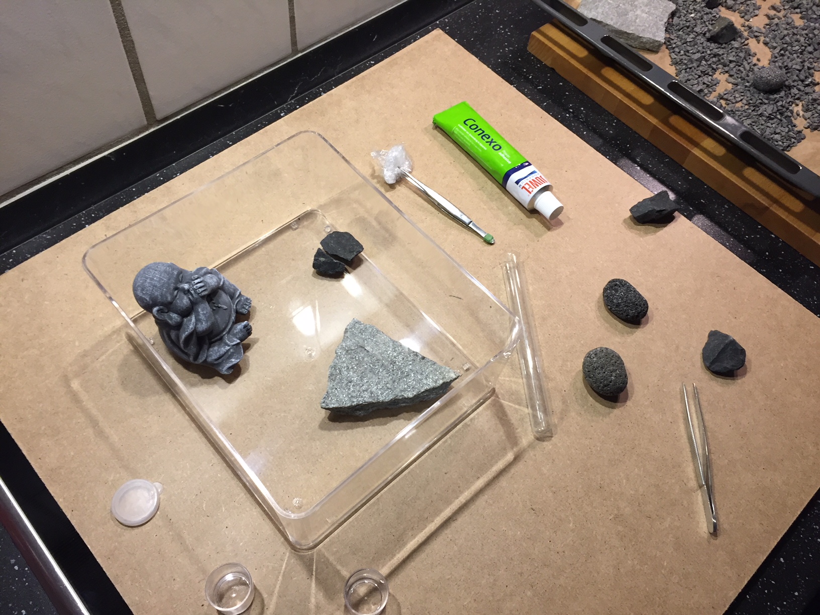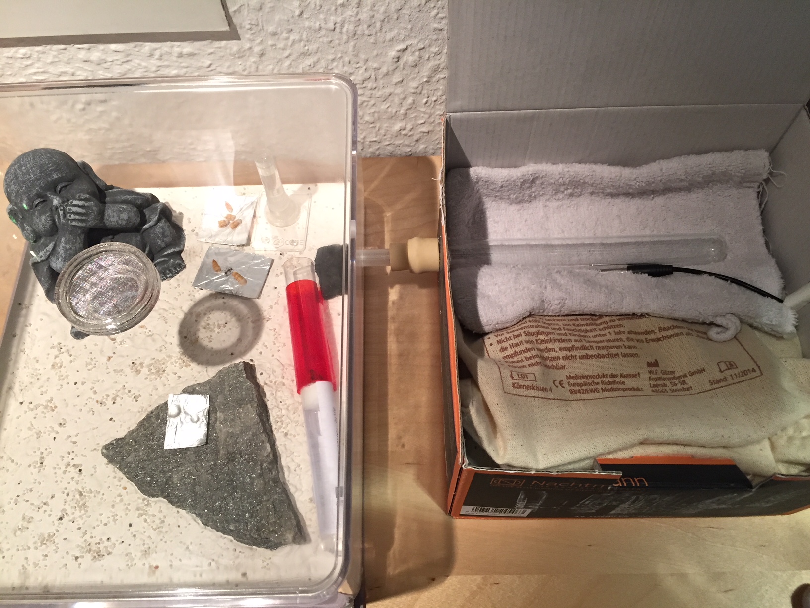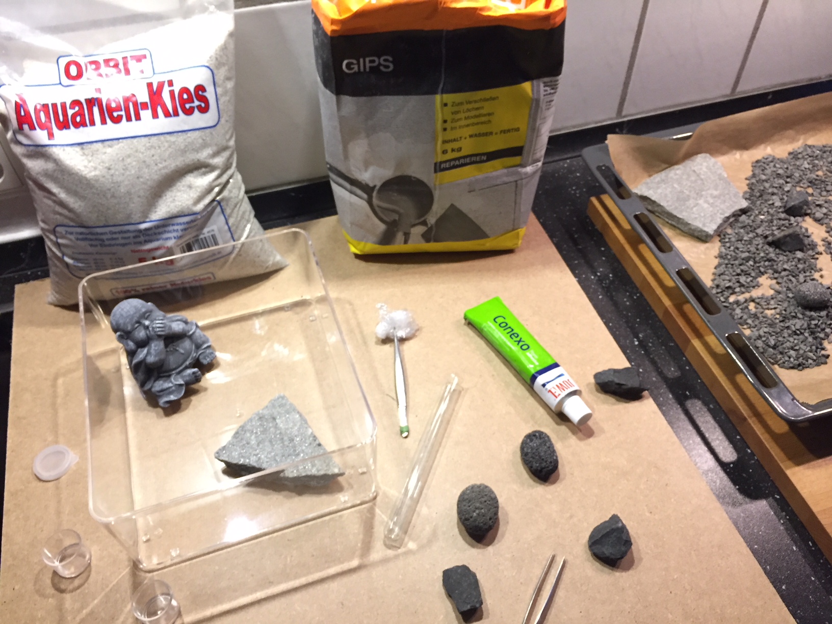 Alle verwendeten Bauteile (außer der Gips und die Box selber) wurden abgekocht oder im Ofen gebacken :-)
