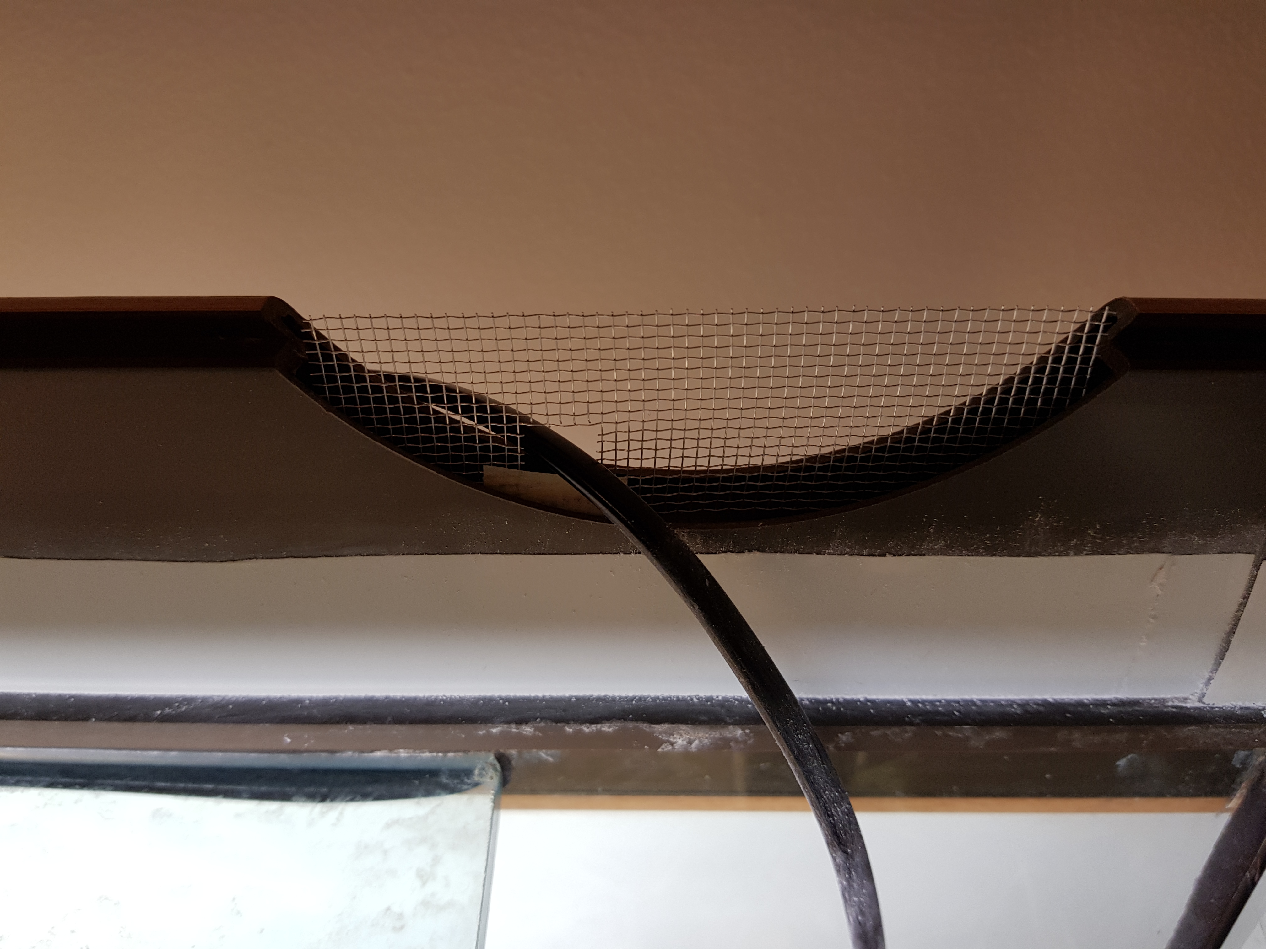 Beleuchtet wird das Becken mit zwei T5 Röhren, eine 27mm Bohrung dient als Erweiterungsmöglichkeit und damit die Ameisen nicht auf Reisen gehen, habe ich in der Abdeckung doppelseitiges Klebeband angebracht und mit Talkum bestrichen; das soll angeblich ewig halten.