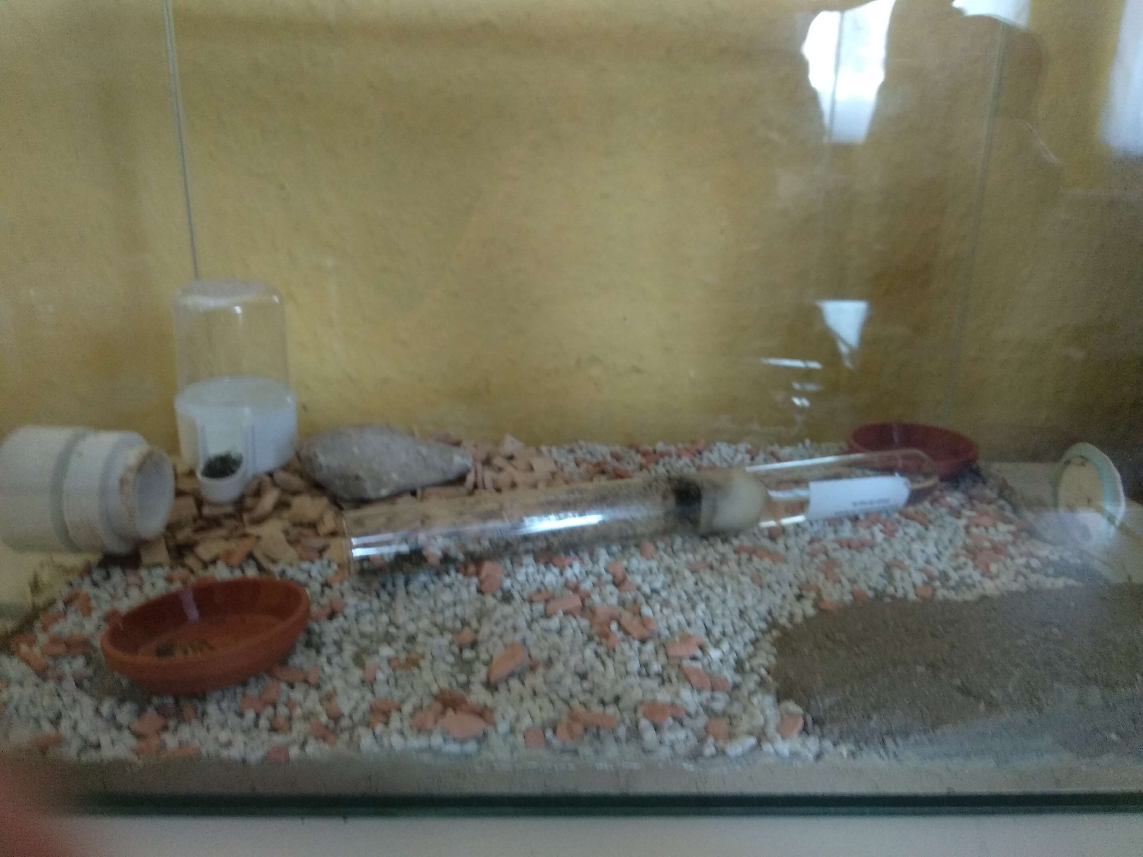 Die Tiere waren sehr panisch sowohl als ich sie aus ihrer „Verpackung“ geholt habe, als auch als ich sie einfach in die Arena gelegt habe und auch als ich den Stopfen entnommen habe.