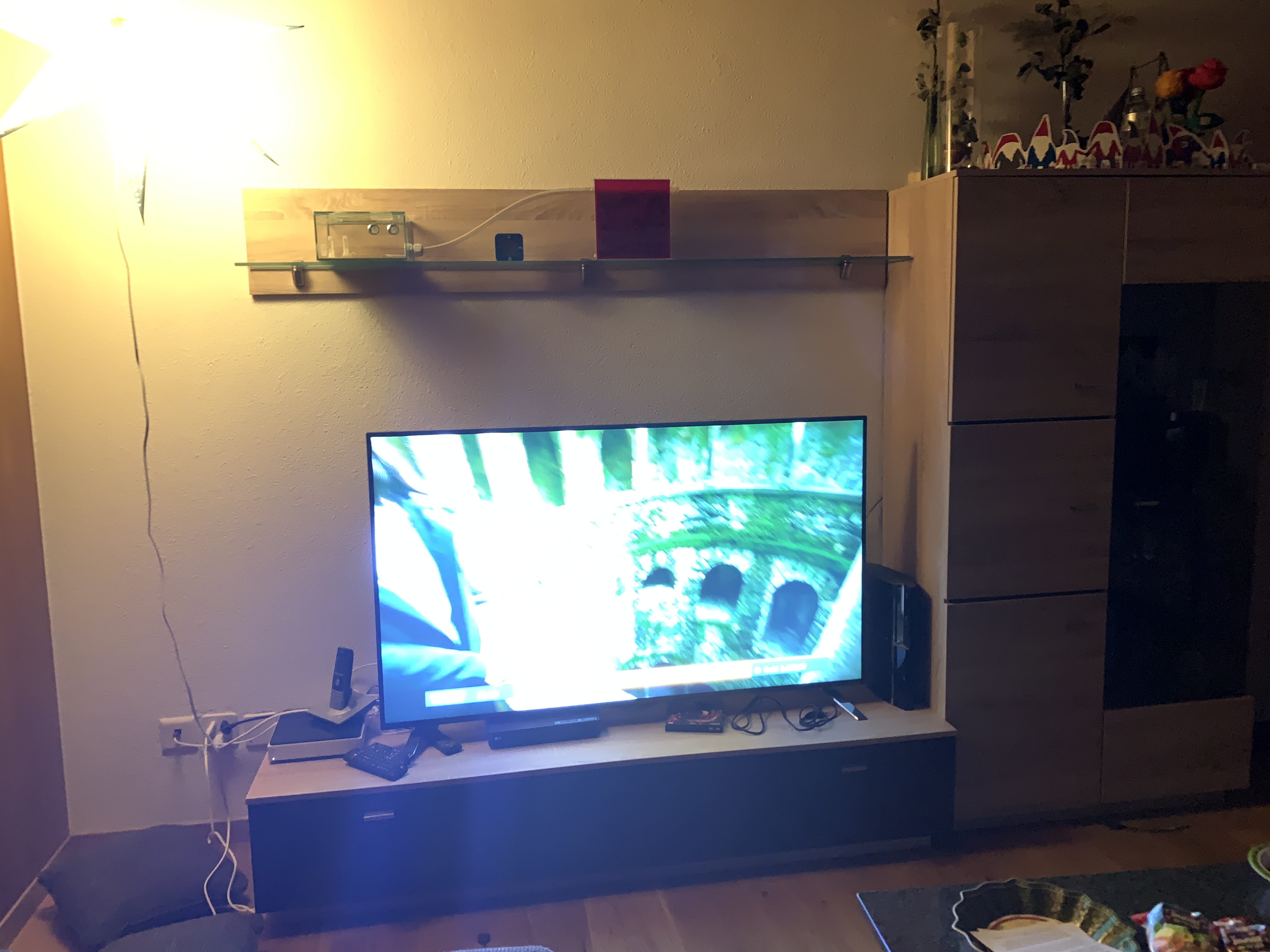 Natürlich habe ich mein Formicarium dort hingestellt wo man es nicht sollte: über dem Fernseher und wegen dem Weihnachtsstern (der ja zur Weihnachtszeit unbedingt da hin muss), hatten es meine Ameisen auch noch sehr hell! Wenn ich einen Weihnachtstern sehen will schaue ich mir im Internet einen an und fertig! Meine Frau meint: Deko sei schließlich wichtig, ts!