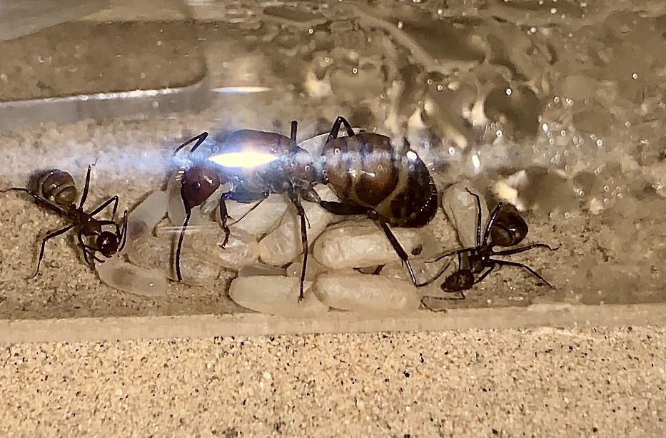 DIE ERSTE ARBEITERIN IST GESCHLÜPFT (entschuldigt die Großschreibung, es soll Begeisterung ausdrücken, nicht das ich schreie) meine erste bei mir geborene/geschlüpfte Ameise! Immer und immer wieder zählte ich nach, ich konnte es nicht glauben dass ich nun neben der Königin nun vier Arbeiterinnen hatte!