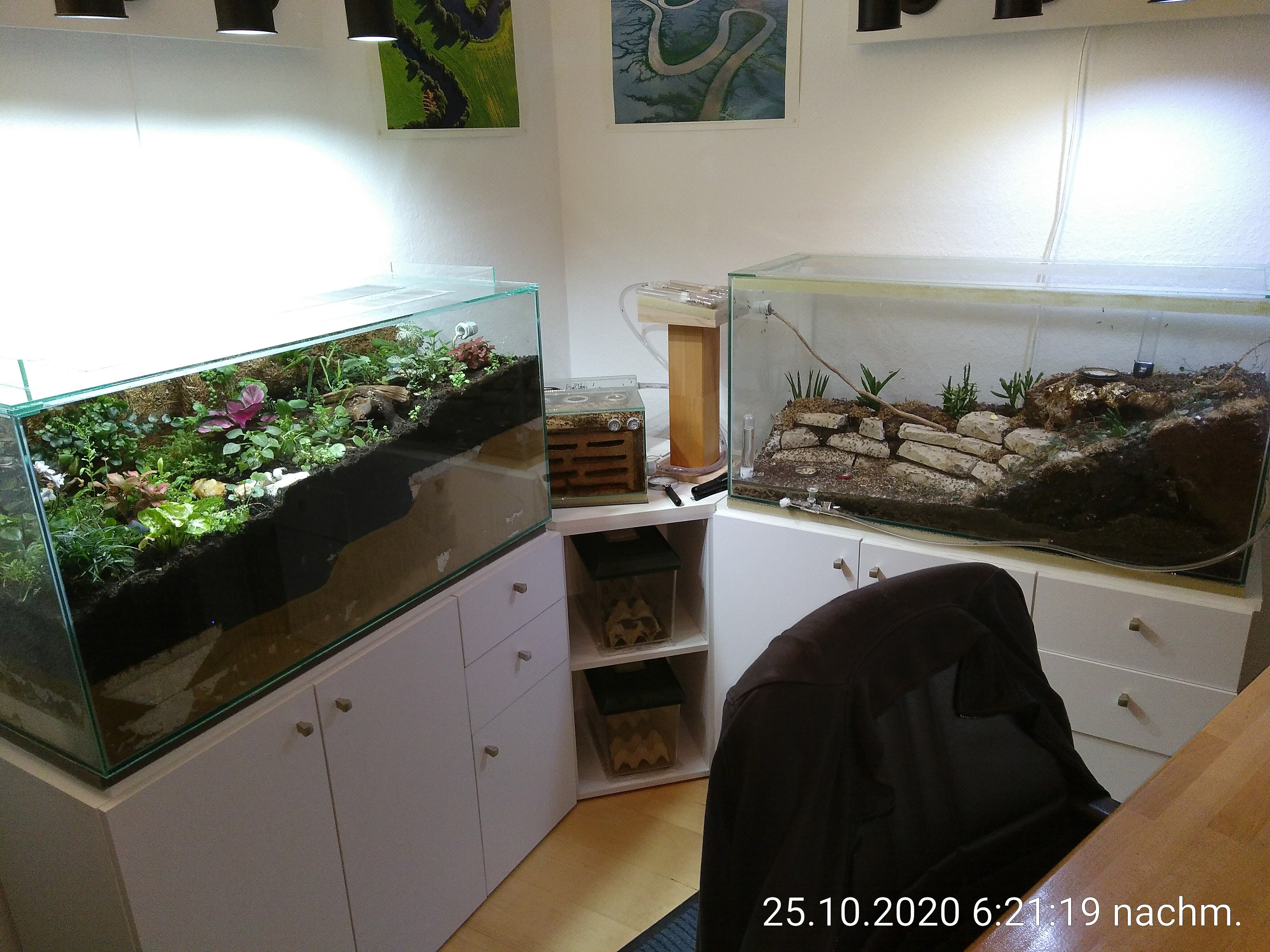 Aber warum fliegen sie im neuen Becken an den Deckel und im alten nicht? Und warum nur die männlichen? Macht sie die höhere Luftfeuchtigkeit aktiver?