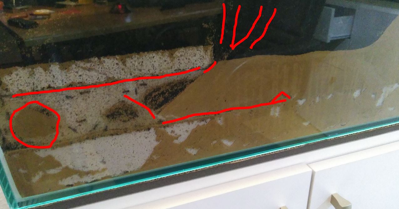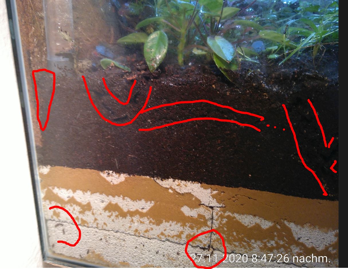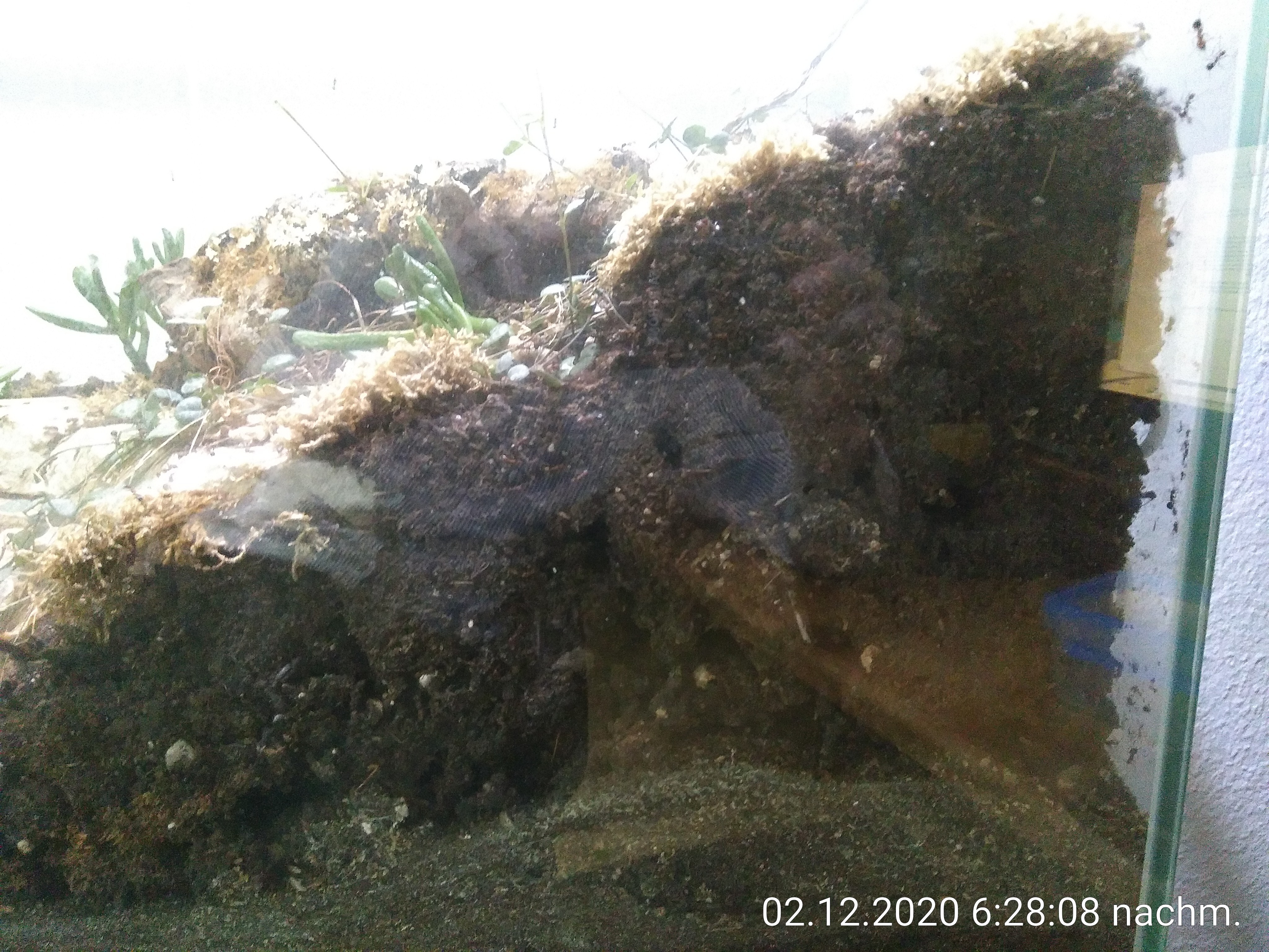 Die Tendenz haben sie ĂĽbrigens schon immer gehabt, egal in welchem Becken. Die vordere linke Ecke war immer ganz besonders interessant fĂĽr sie. Ob sie oben den Ausbruchsschutz testen oder unten graben. Sie laufen dort auch besonders viel am Glas. Keine Ahnung, warum gerade da...
