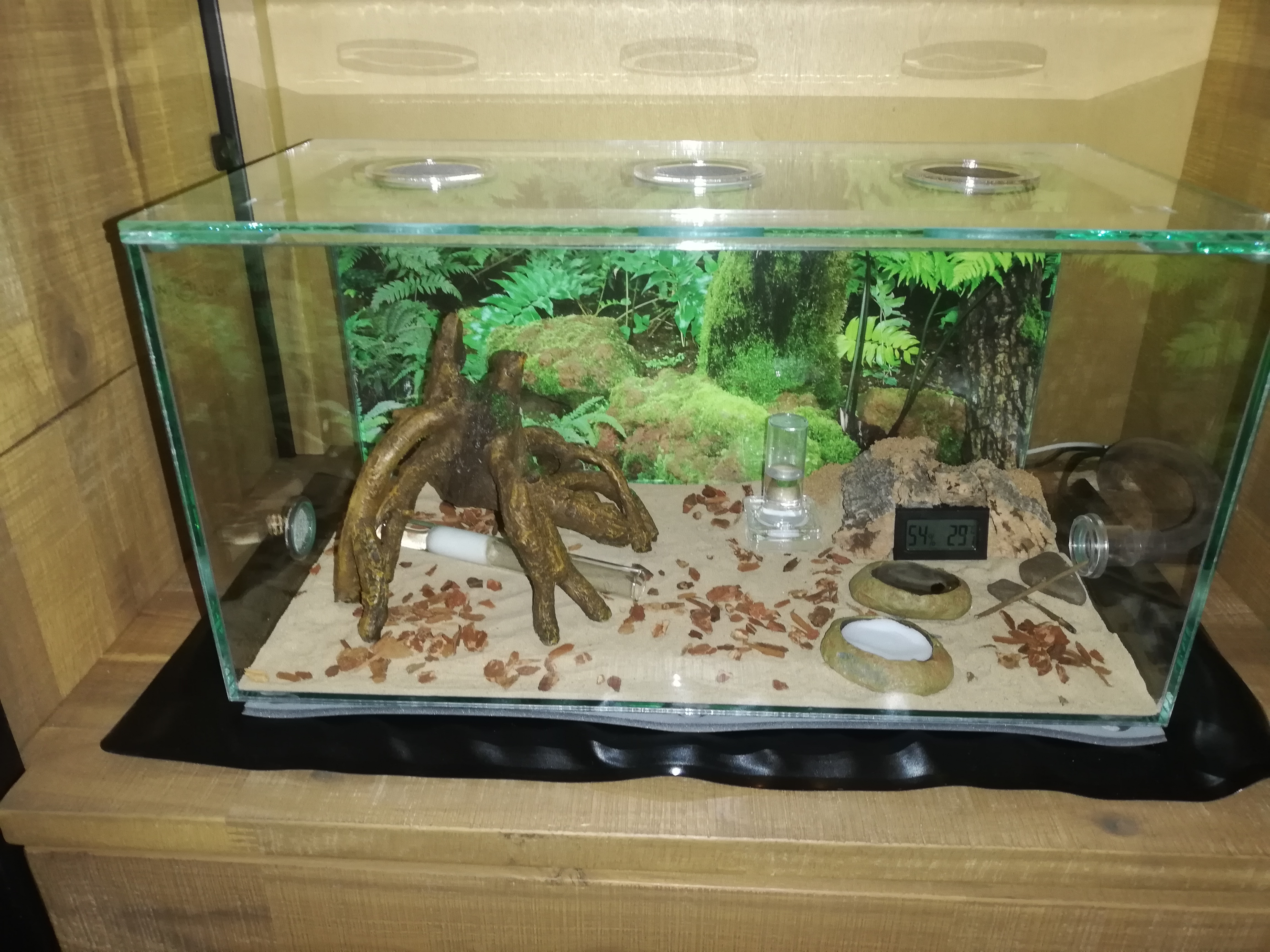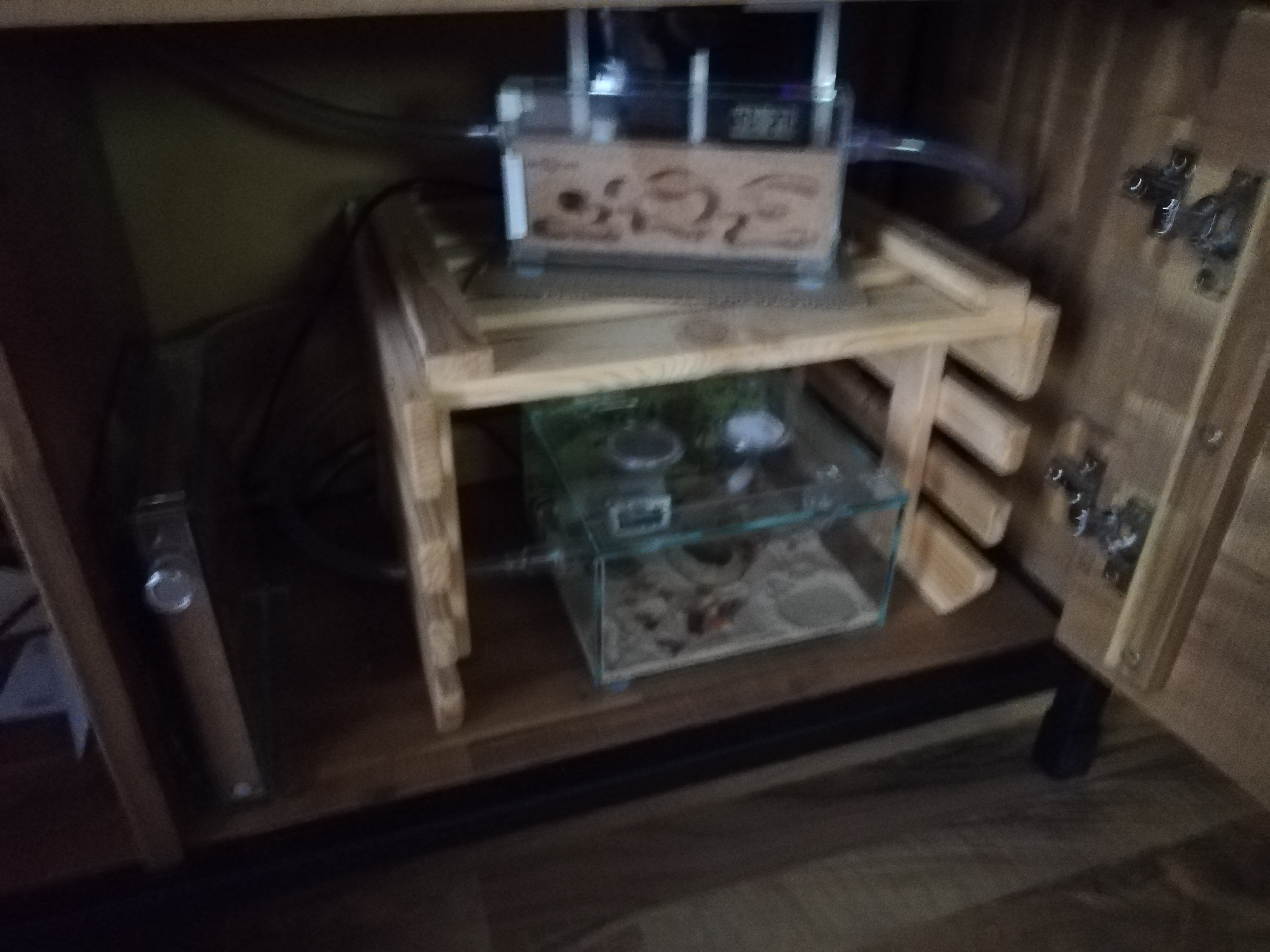 Unter dem Nest ist noch die Arena aus dem Starter Paket, dort sind 2 RG mit Wassertank eine auf eines Heiz Matte und das zweite ohne .