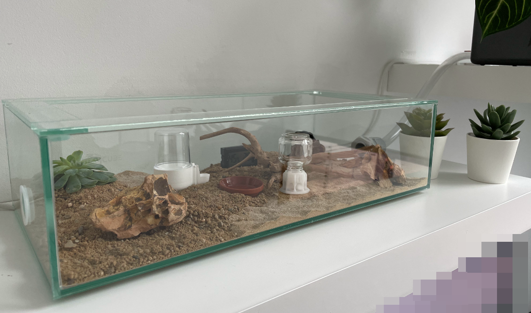 Die fellah scheinen aber vom Klima irgendwie sehr genügsam zu sein d.h. ich lese 21-25°C und 50-60% Luftfeuchtigkeit im Nest und die Arena bis 28°C und 30-50% Luftfeuchtigkeit. Da ich hier eine Raumtemperatur von 22-24°C habe muss ich das Nest wohl gar nicht beheizen und die Arena kommt aktuell mit dem Heizkabel bereits auf 27°C und das ohne Deckel.