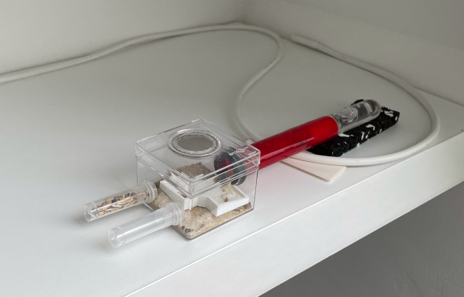 Den Schlauch der den Nestbereich mit der Arena verbindet habe ich angeraut um Ameisen die nicht so gut klettern können zu helfen. Ich denke das hätte ich mir mal locker schenken können bei dieser Art aber gut :lol: Wenn die Einsicht zu sehr dadurch beeinträchtigt ist kann ich diesen ja schnell ersetzen. :mrgreen:
