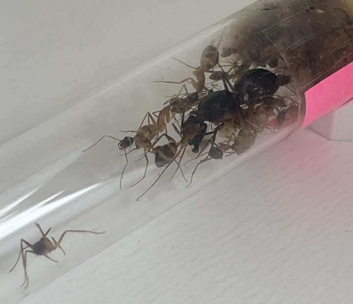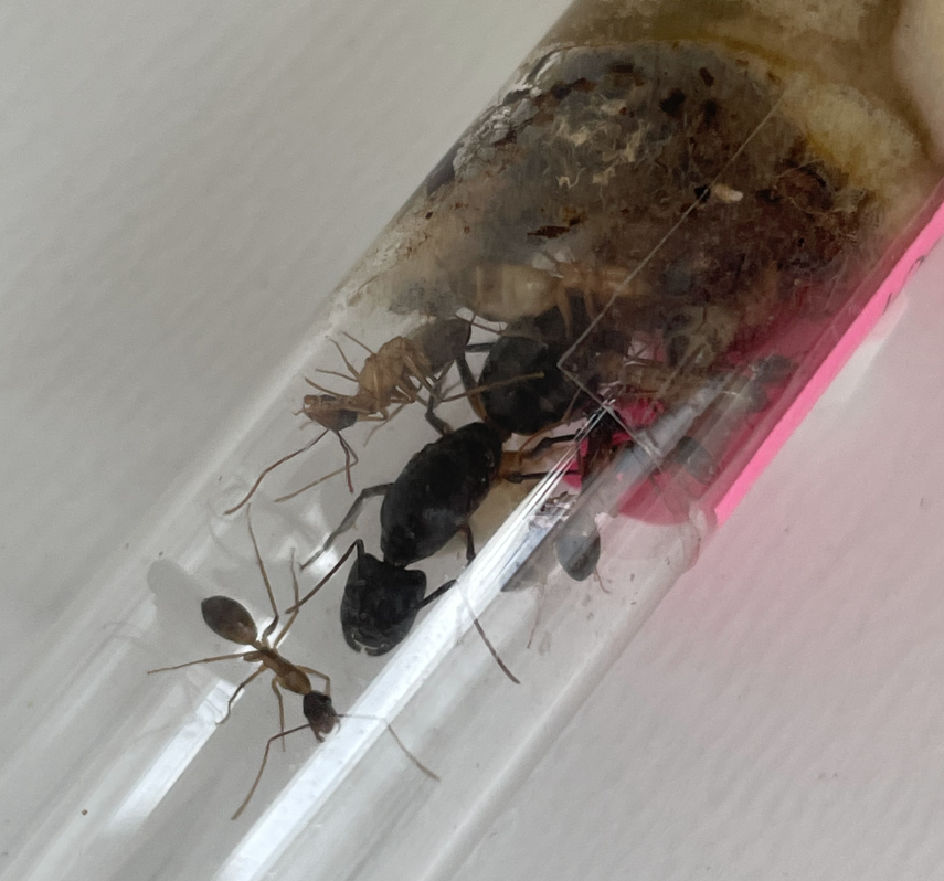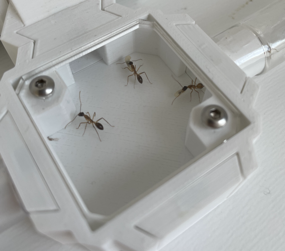 Ich habe in Vorbereitung nun doch noch eine weitere kleine Arena angeschlossen und werde versuchen diese als Lebendfutter-/Abfallbereich zu nutzen? Wir werden es sehen. Aktuell ist die Kolonie glaube ich noch zu klein aber Sie wäre da zum erkunden: