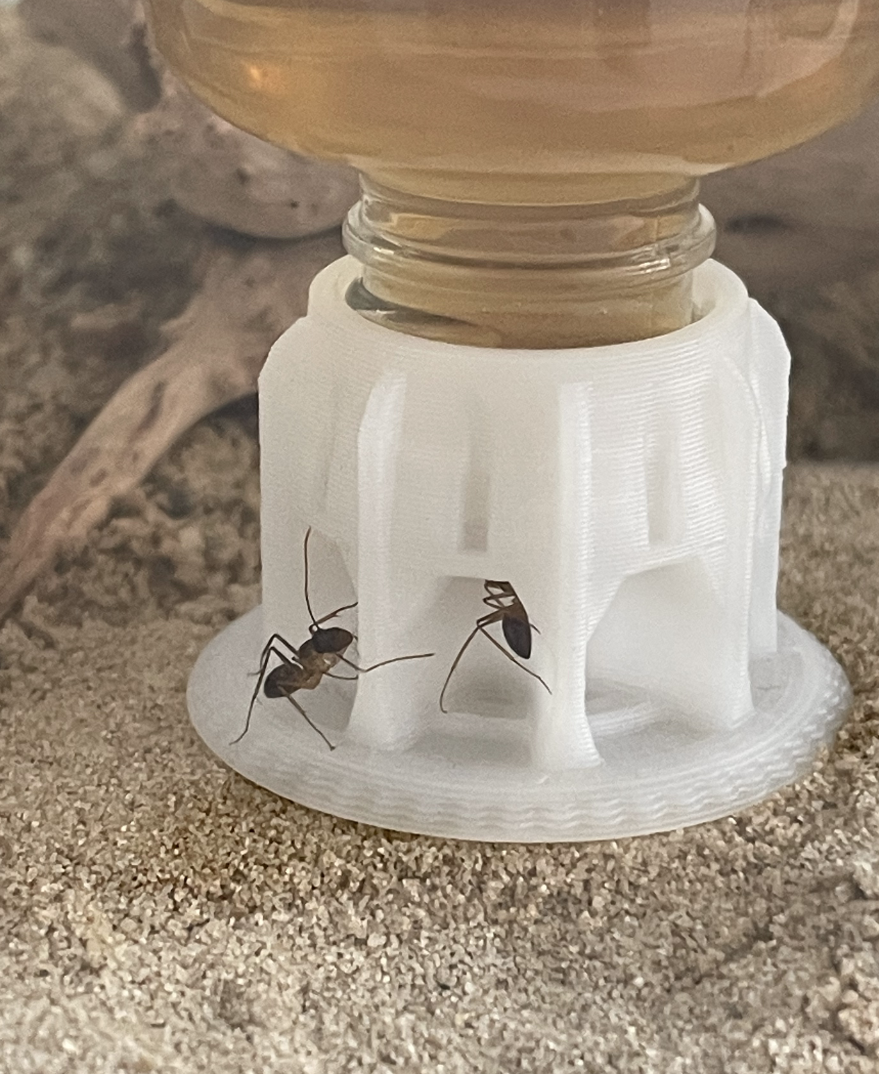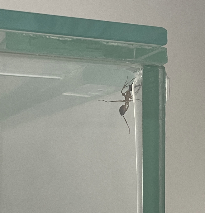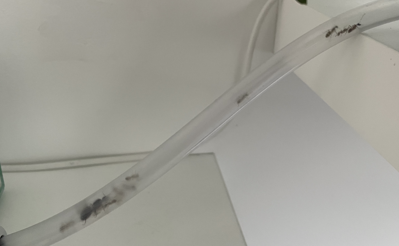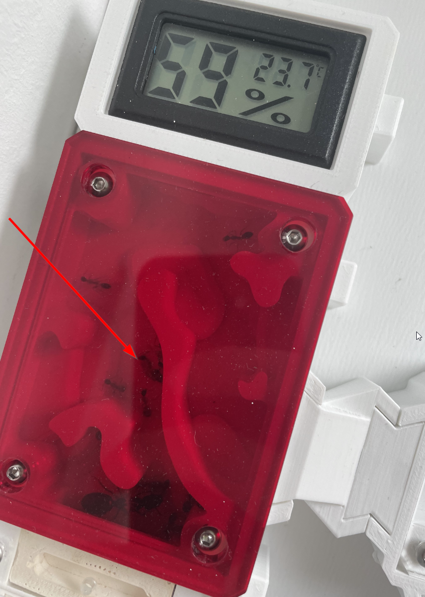 Ich habe nun auch das Wasser in die unbeheizte Futterarena umgezogen. Ich hoffe es ist nun nicht zu weit weg. Ich habe aber ab und an schon eine Ameise beim Zuckerwasser gesehen und denke das Sie somit auch diese Strecke gehen.