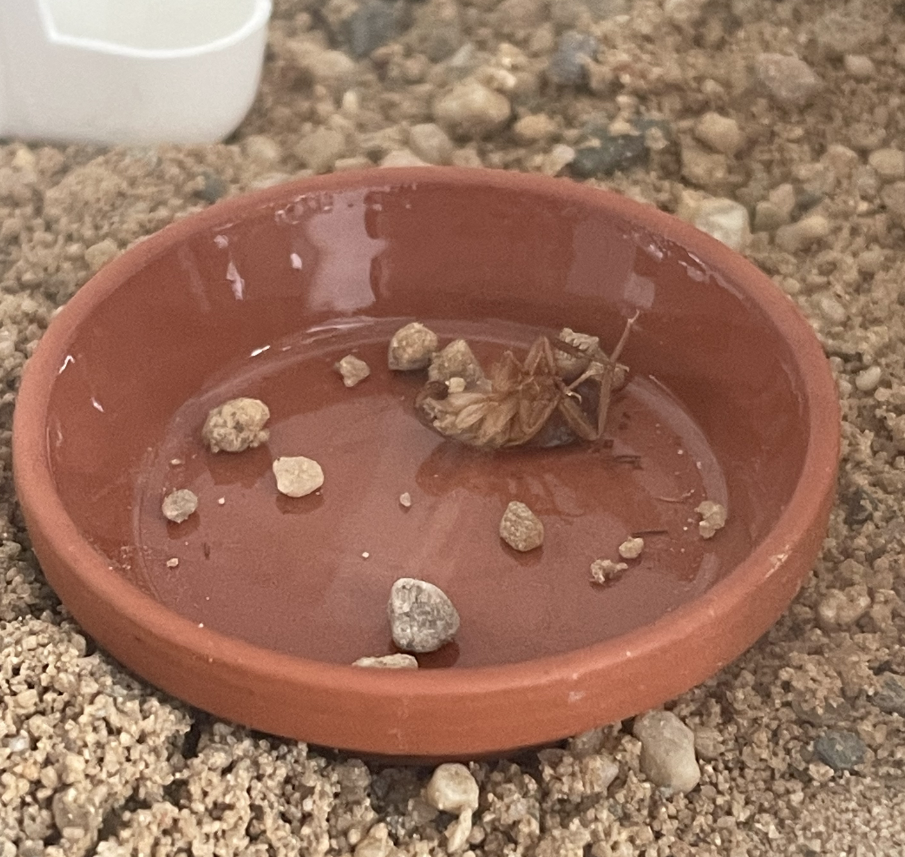 Hab Sie und das Futtertier nun mal entfernt. Fehlt vielleicht doch irgendwas? Wasser ist ja in der Arena mit der Tränke und Zuckerwasser in der Futterarena und TK Schokoschaben sind auch immer da. :|