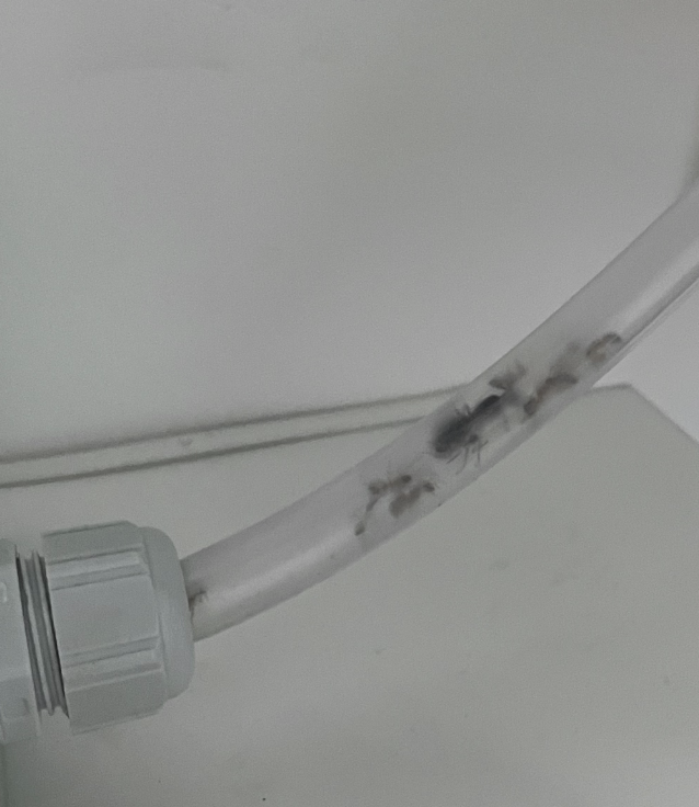 Die Mädels sind nicht in das RG umgezogen. Ich habe es nun wieder entfernt. Morgens sehe ich immer ein paar Arbeiterinnen im Schlauch sitzen die dann wenn es heller wird in das Nest zurück gehen. Die Königin hab ich seitdem nicht mehr außerhalb vom Nest gesehen. Es ist mir fast zu viel Luftfeuchtigkeit im Nest. Ich werde das mal weiter beobachten.