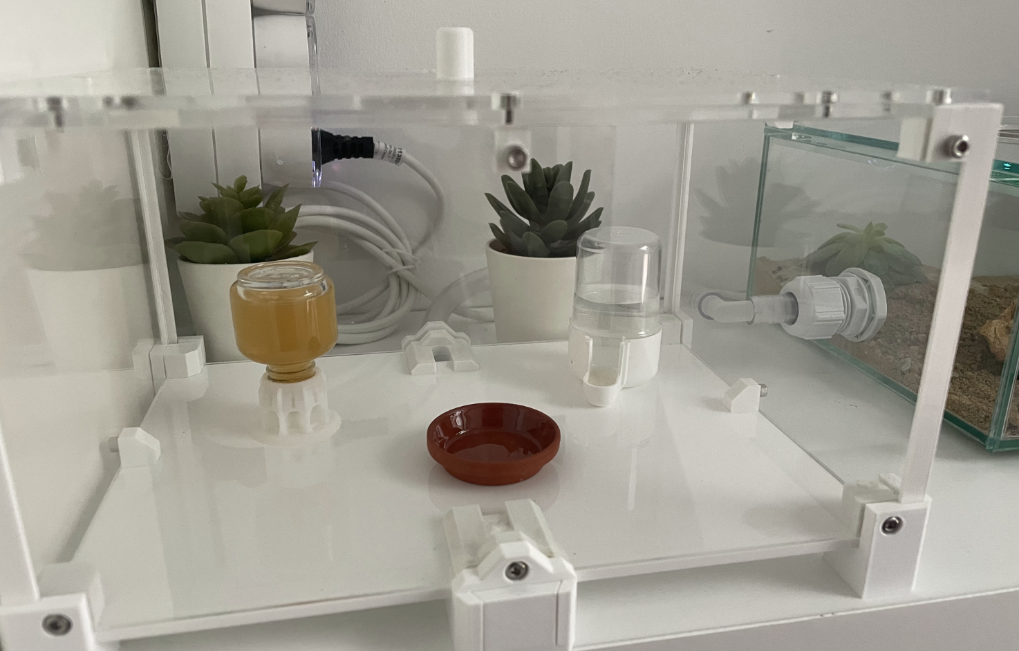 Da ich leider nicht gut geplant habe und zuerst meine Arena und Nest gebaut habe und dann erst meine Art ausgesucht habe passt es leider nicht perfekt. :| Die Nester haben für die fellah auch zu viele Features bzgl. Kontrolle der Temperatur und Luftfeuchtigkeit - OVERKILL. :lol: