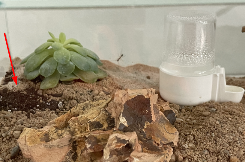 Ansonsten haben Sie wohl ein weiteres Nest gesucht oder ein Zweitnest angelegt? Unter der Pflanze wurde Erde raus getragen und manchmal sehe ich eine Arbeiterin unter der Pflanze verschwinden: