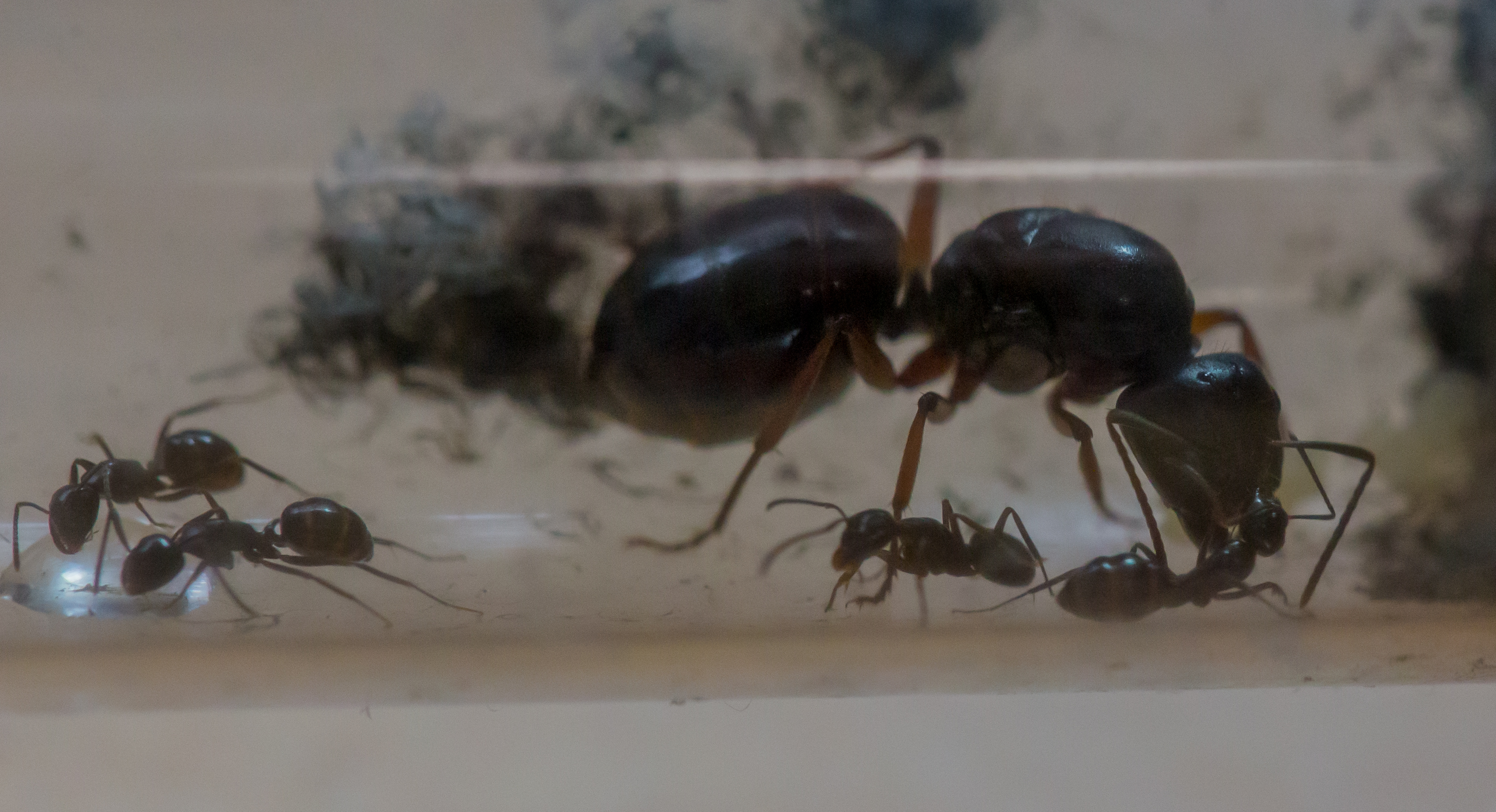 Habe einen Fehler gemacht und die Tiere im Nest total aufgeschreckt. Alle 5 waren richtig panisch. Eine Arbeiterin ist tot (von der