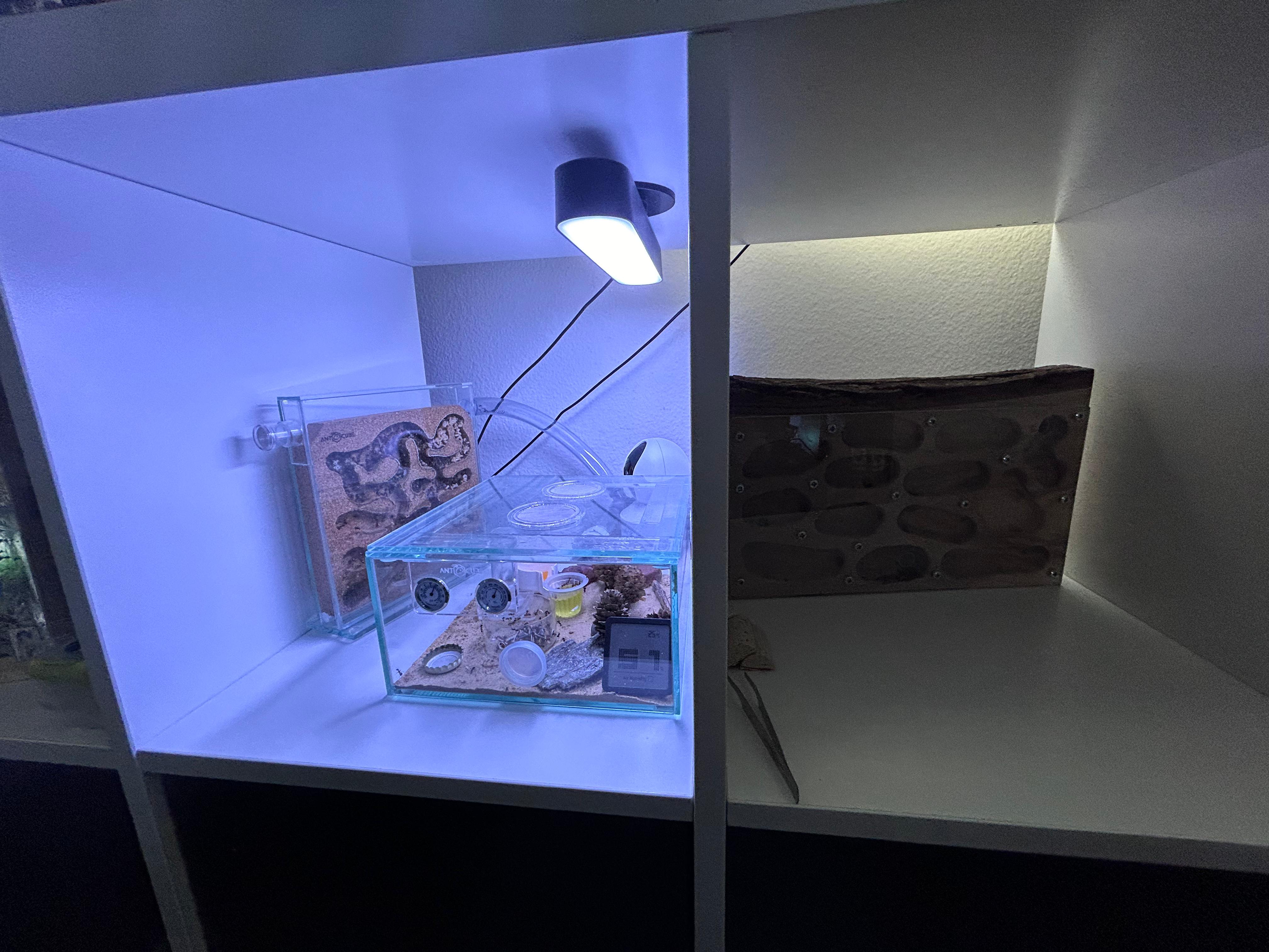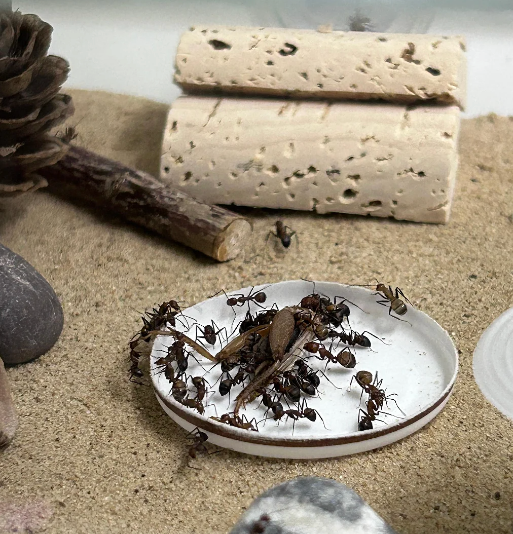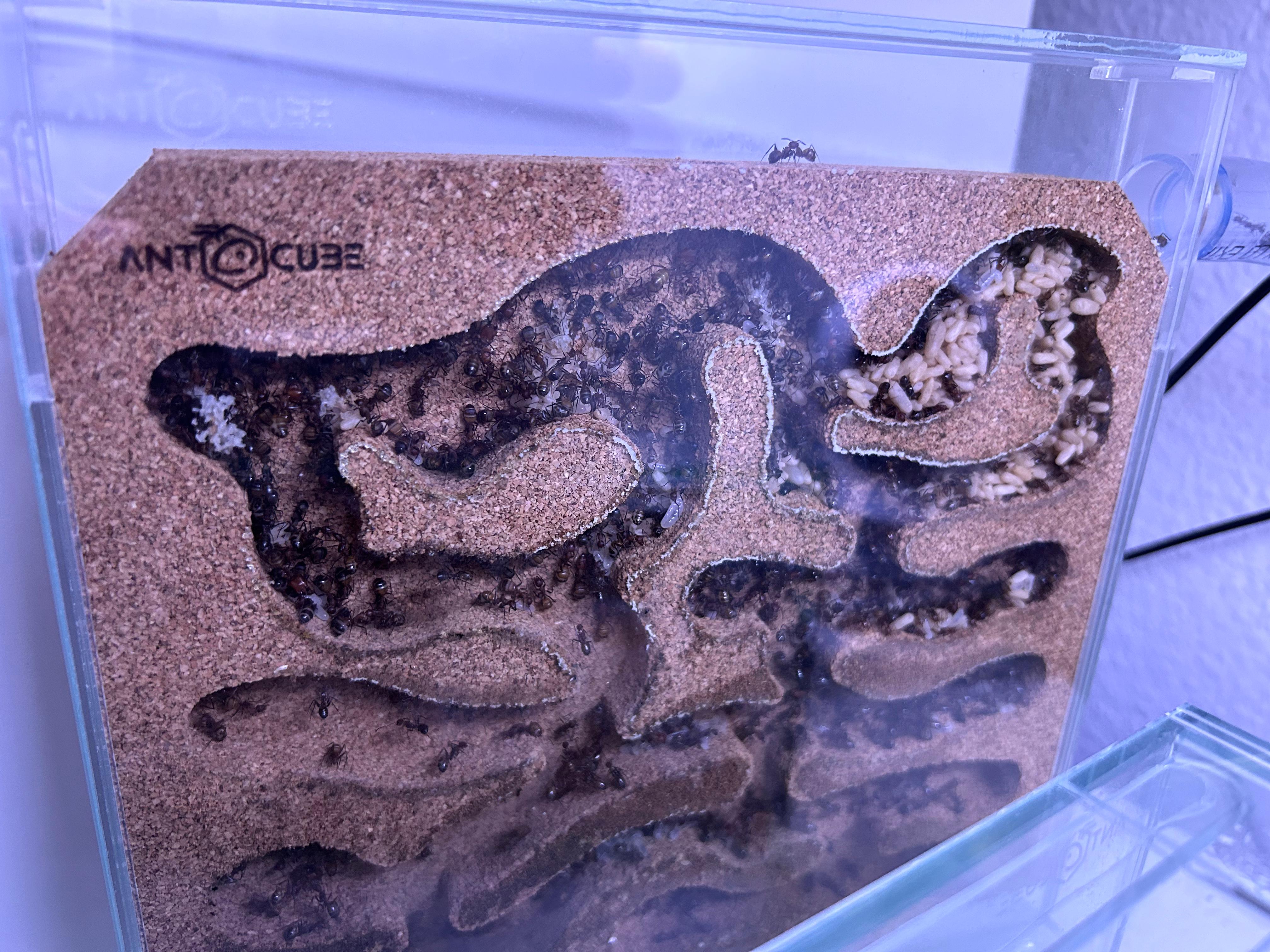 In den vergangenen Jahren und mit dem Aufkommen von TikTok bin ich immer wieder auf Ameisen Videos gestossen, welche mich komplett in ihren Bann zogen. Dieses Jahr im frühen Sommer war es dann so weit, ich entschied mich, mir nun meine eigene Kolonie zu bestellen! Da ich generell in der Haltung von Tieren auf mein Umfeld achte, damit ich nicht zu viel ändern muss (z.B. Wasser PH Wert, Temperatur, Luftfeuchtigkeit) ohne dass das Tier sich wohlfühlt, bin ich relativ schnell auf die Camponotus nicobarensis aufmerksam geworden, welche seither bei mir im Büro lebt und sich fleissig vermehrt!