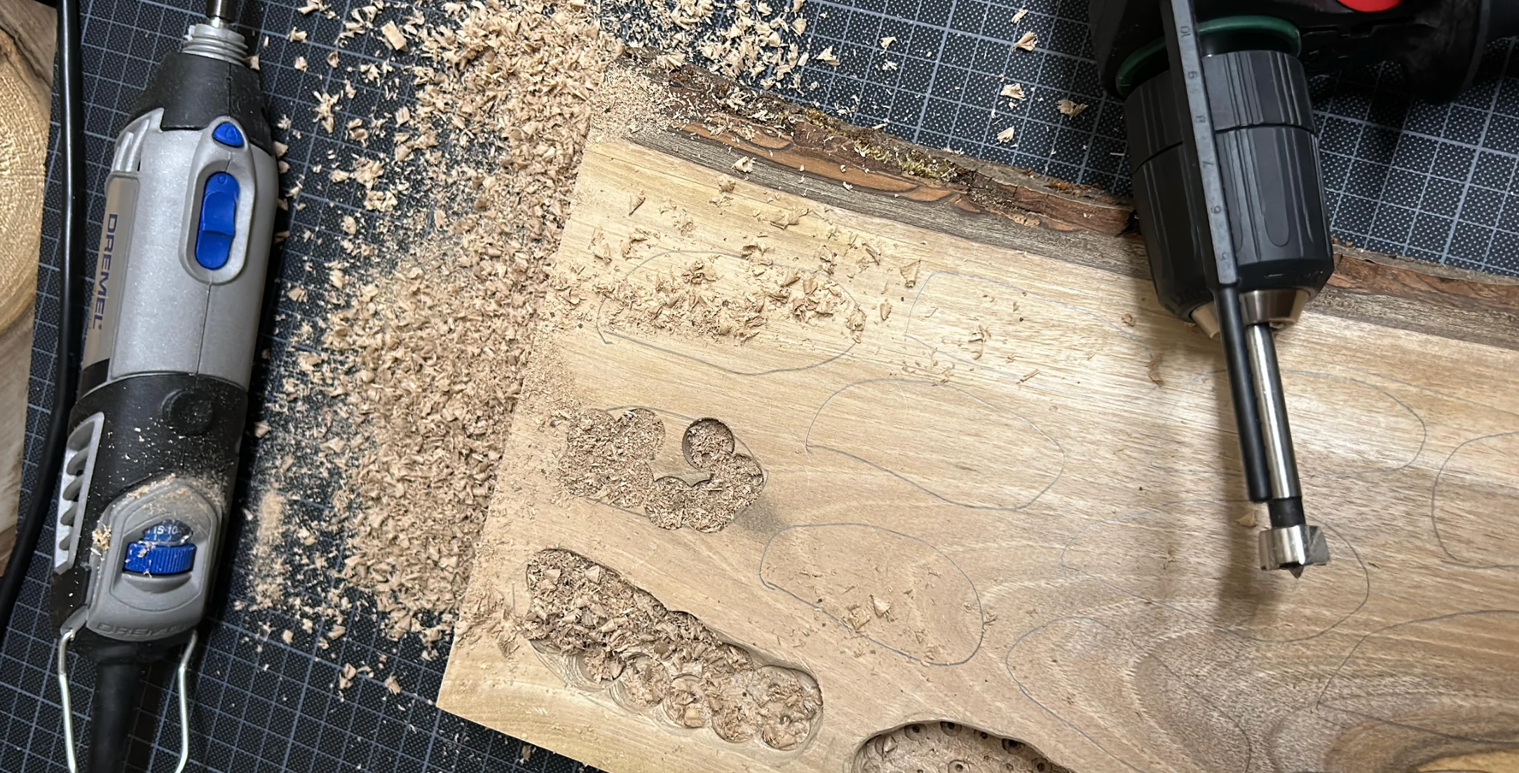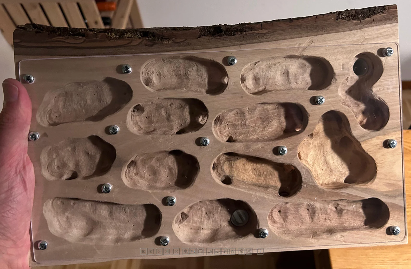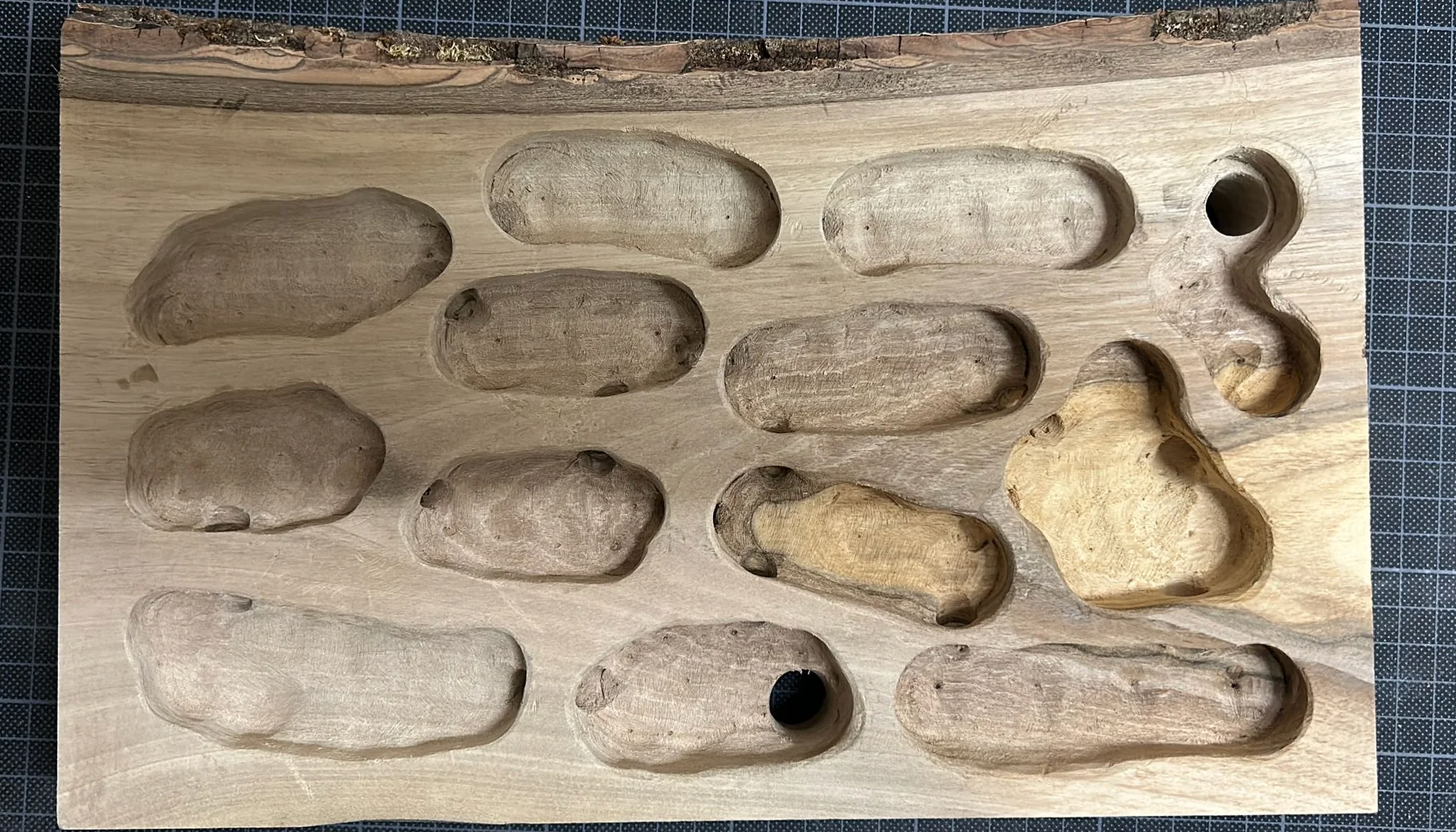 Anbei ein paar Bilder vom Holzstück aus der Schreinerei bis zum fertigen Nest. Es handelt sich um Nussholz, als Laie musste ich die volle Dröhnung an Erfahrung sammeln, was es heisst, Hartholz zu bearbeiten.