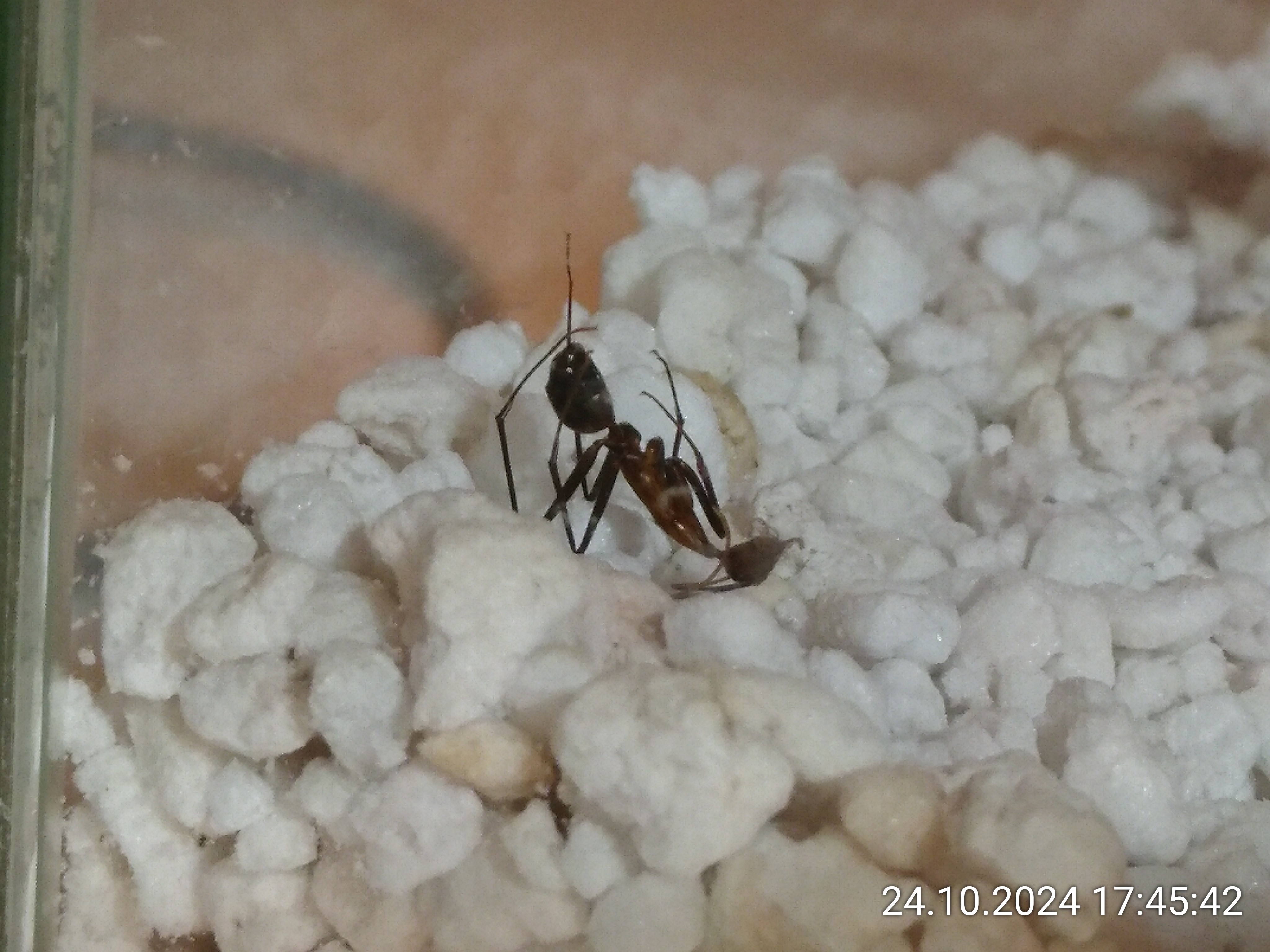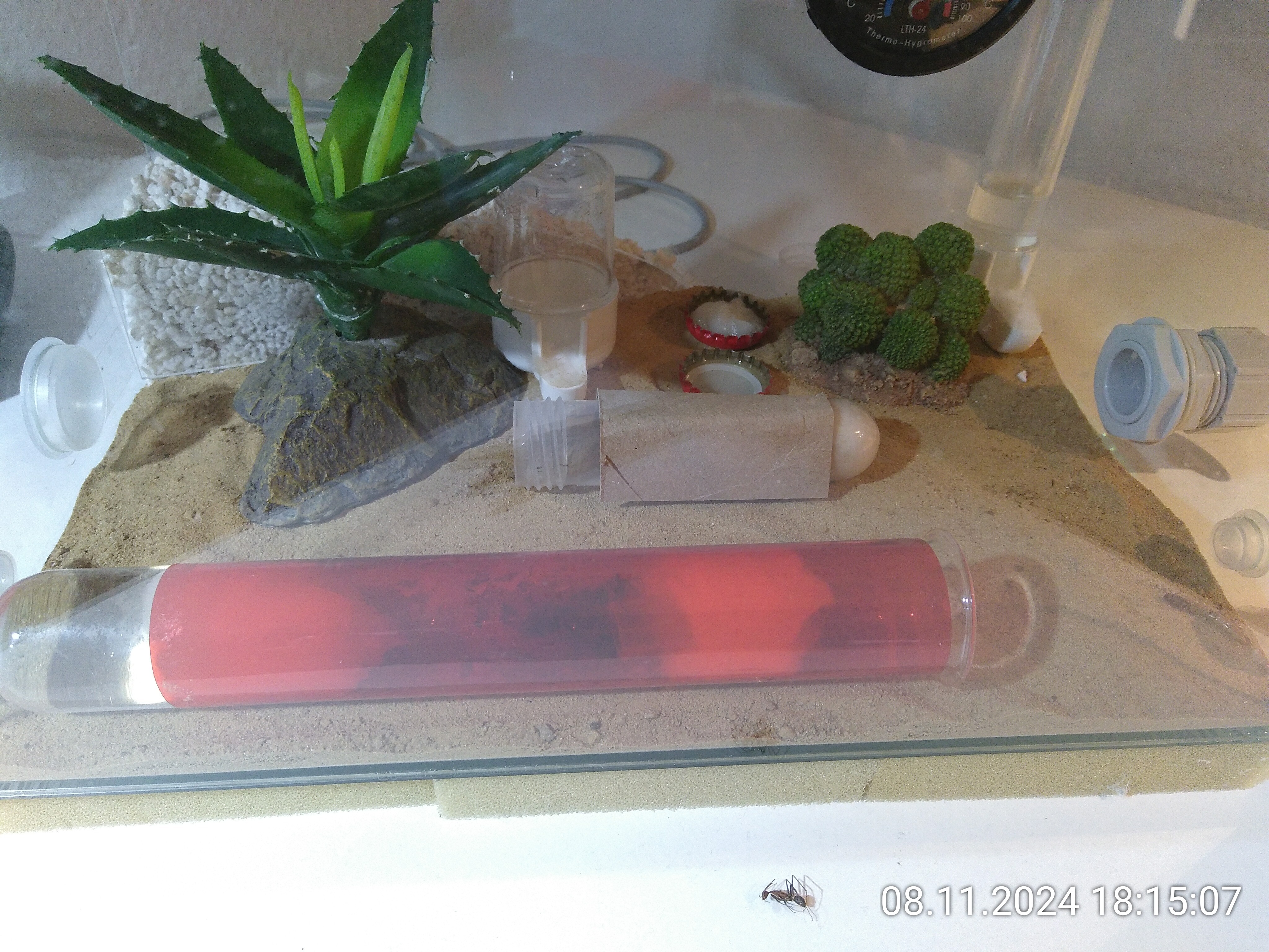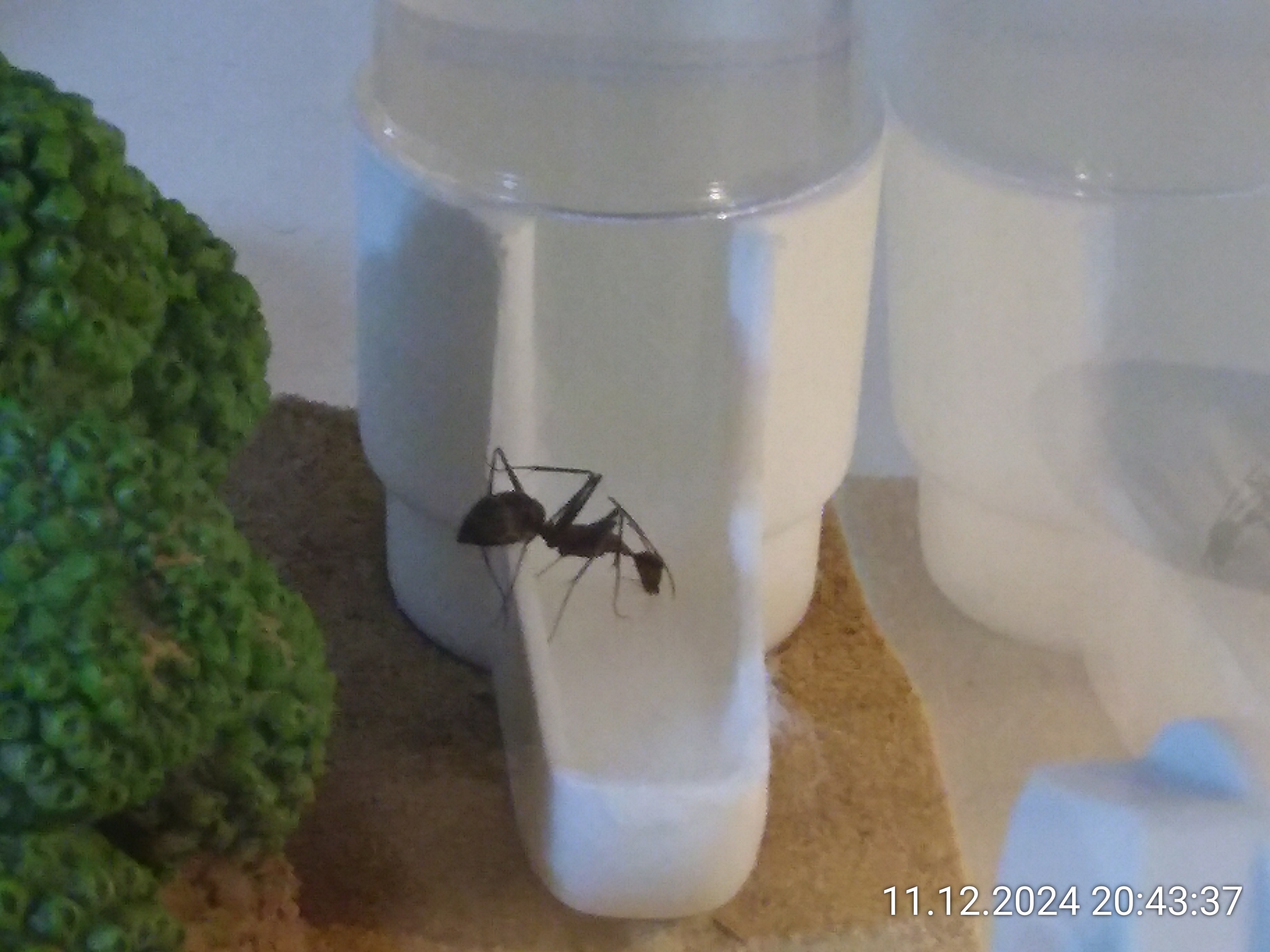 Langfristig sollen sie das Becken meiner anderen Camponotus-Kolonie bekommen, die gerade stirbt. Aber die nächste Zeit müssen sie sich mit einer künstlichen Umgebung arrangieren. Zumindest am Anfang will ich bei dieser Kolonie auch mal wieder etwas vom Gründungs-Spaß erleben und Nesteinsicht haben. Das fehlt mir bei den anderen Kolonien schon manchmal.