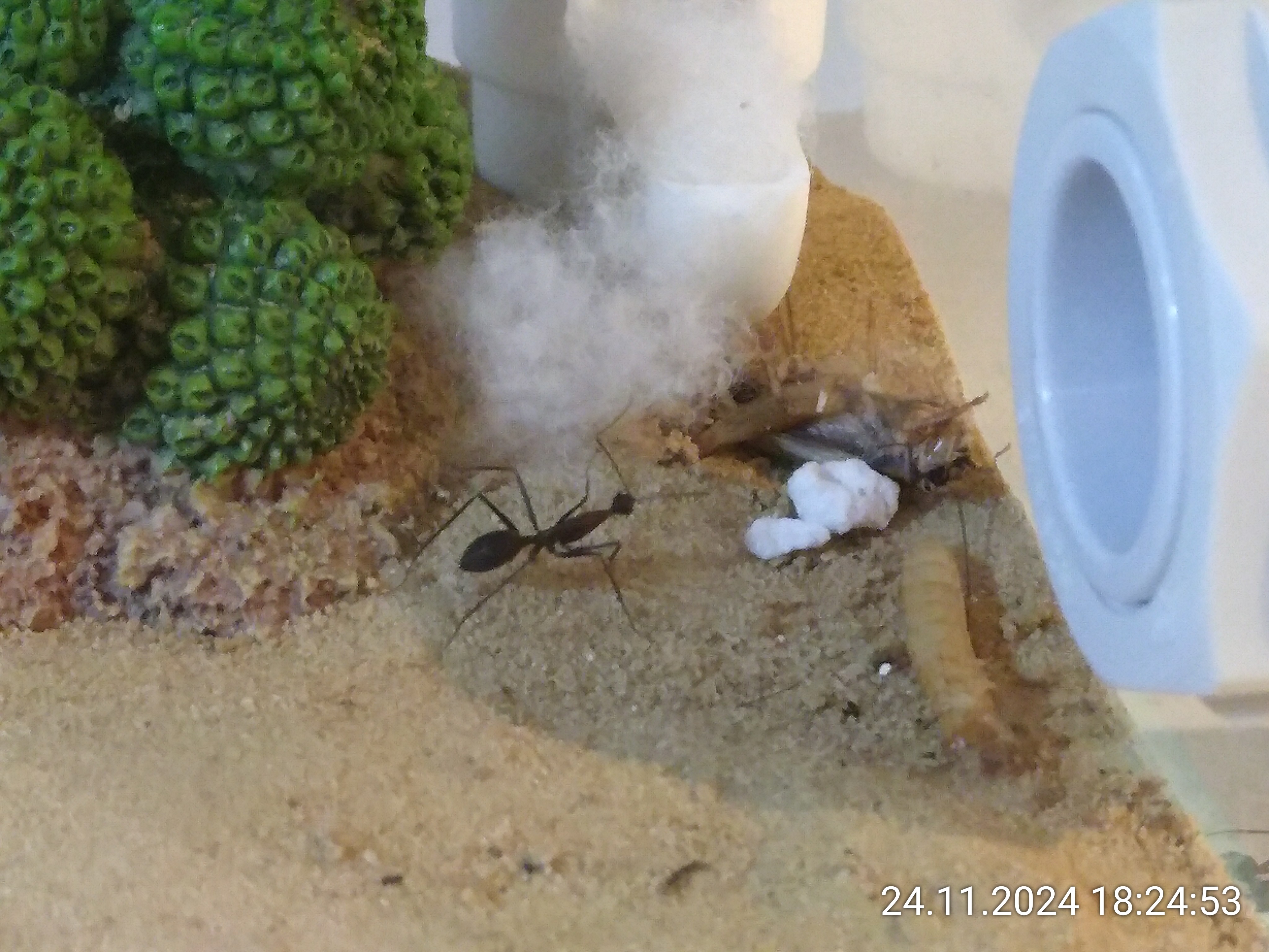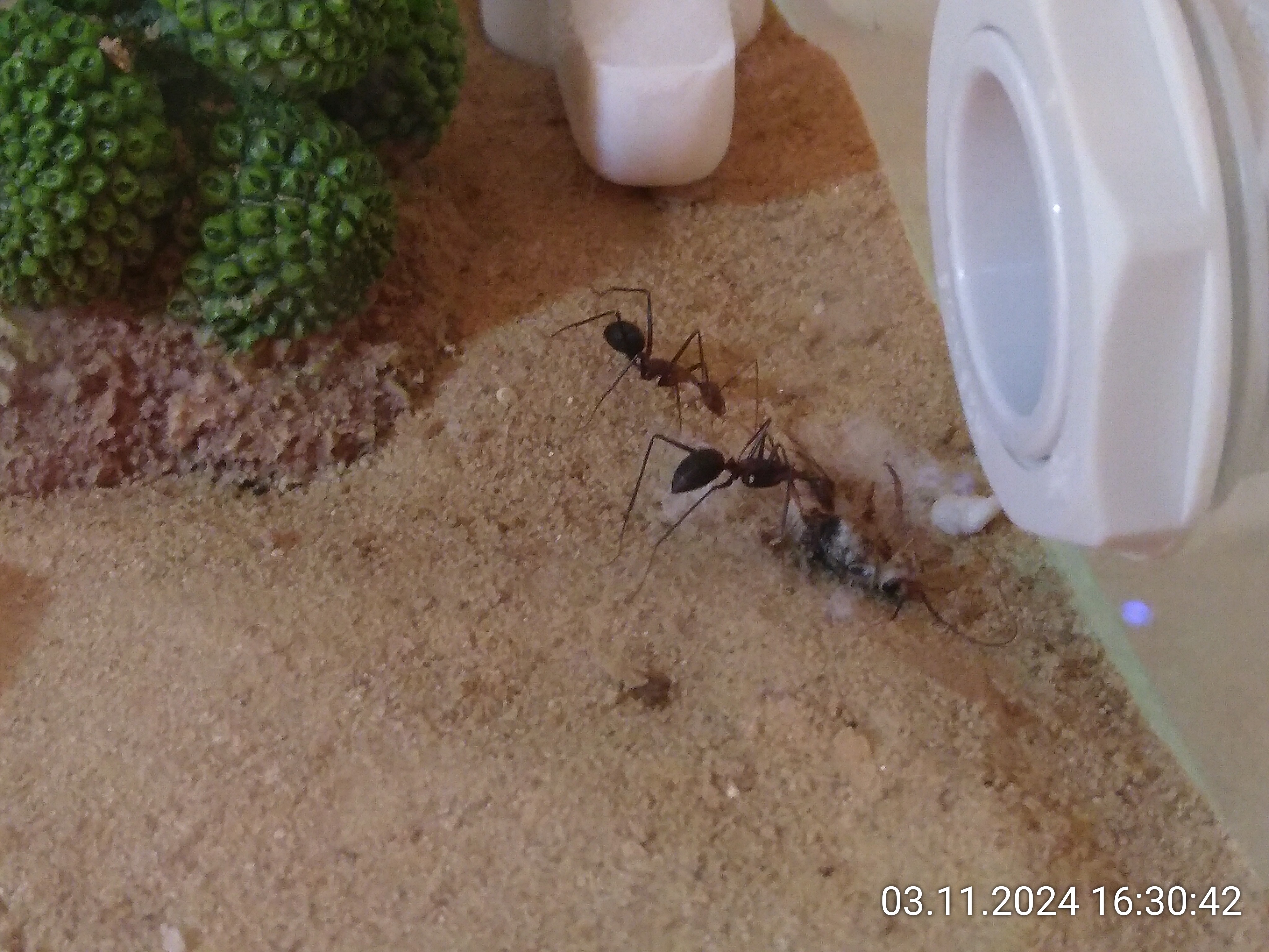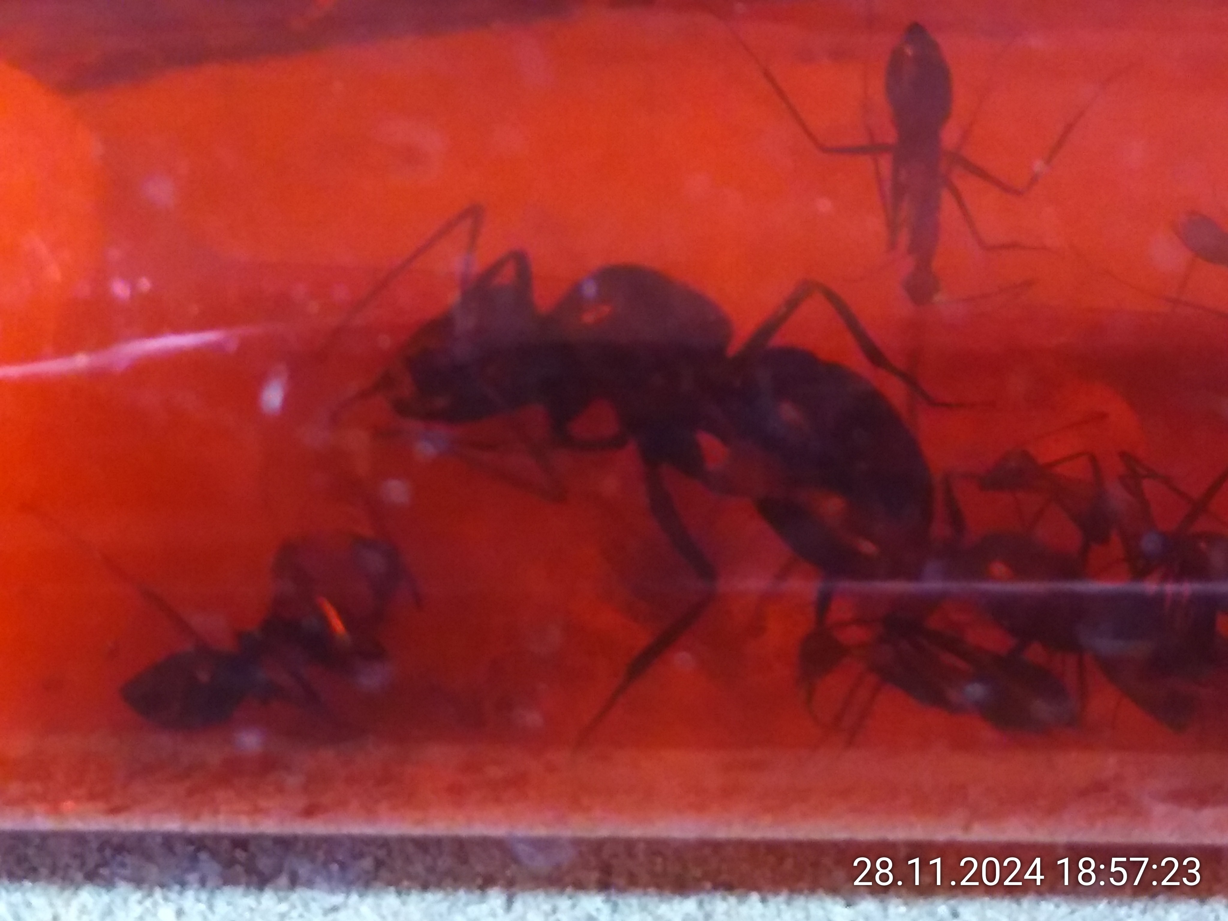 Langfristig sollen sie das Becken meiner anderen Camponotus-Kolonie bekommen, die gerade stirbt. Aber die nächste Zeit müssen sie sich mit einer künstlichen Umgebung arrangieren. Zumindest am Anfang will ich bei dieser Kolonie auch mal wieder etwas vom Gründungs-Spaß erleben und Nesteinsicht haben. Das fehlt mir bei den anderen Kolonien schon manchmal.