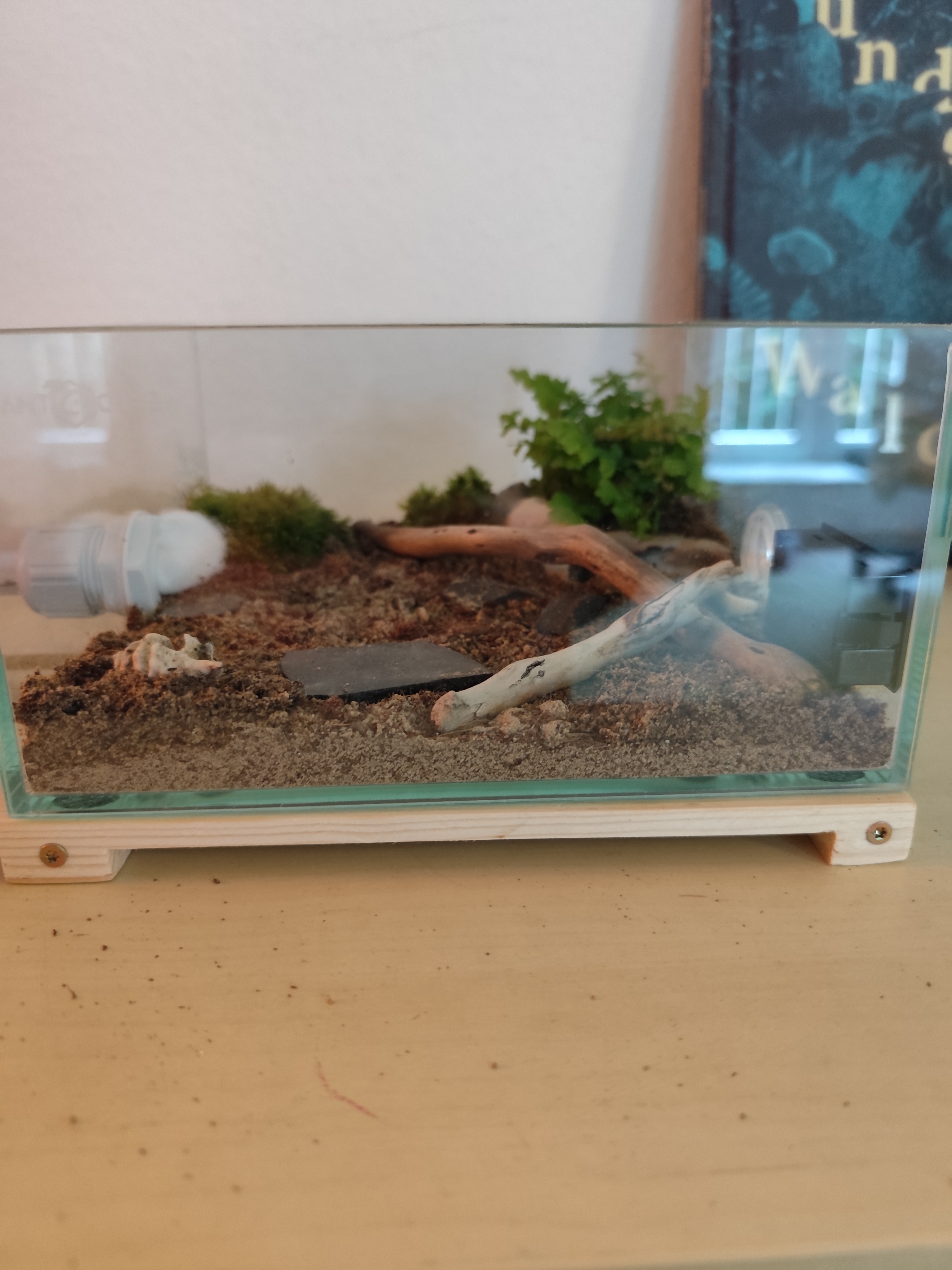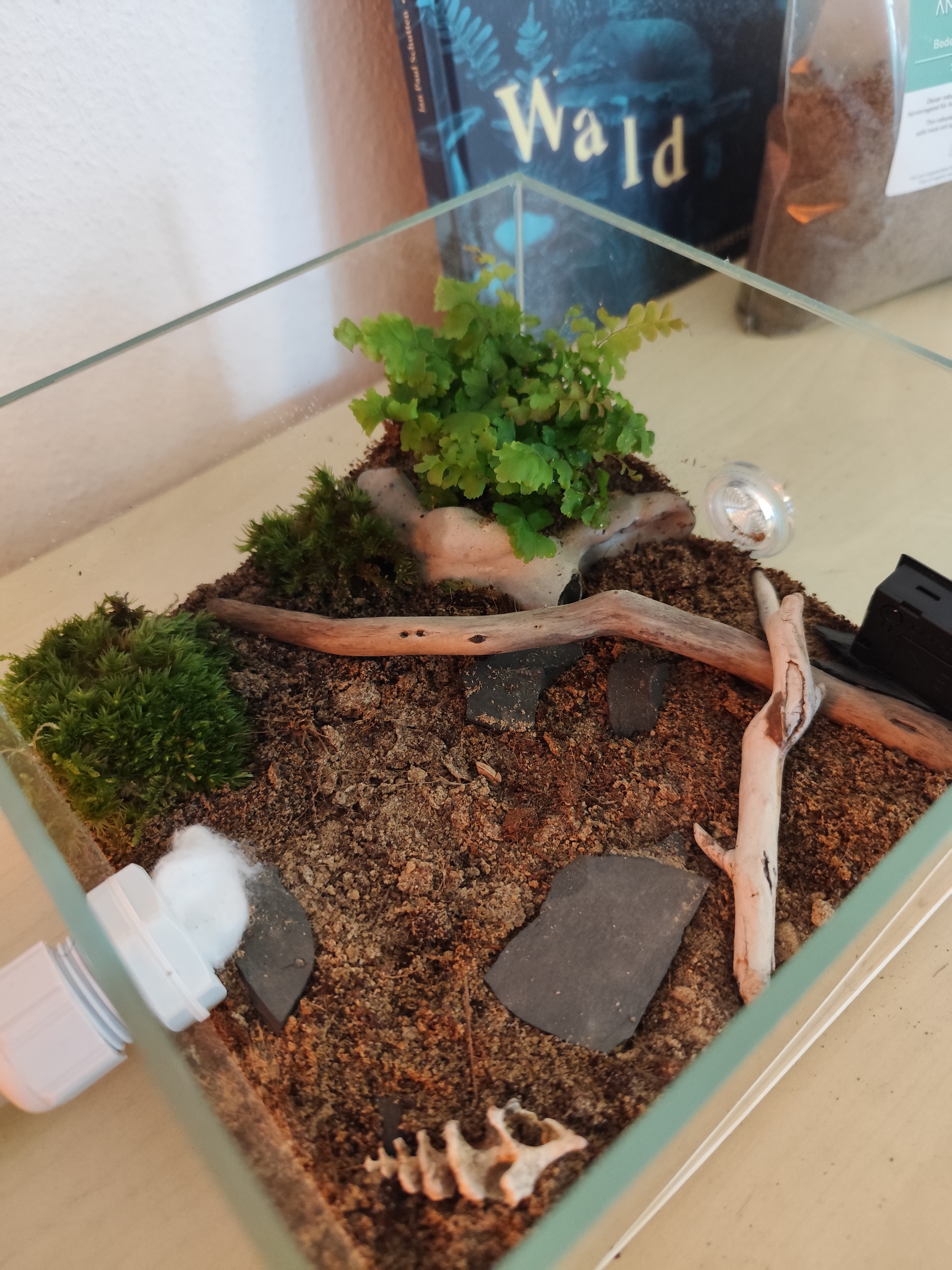 Ich habe einfach den Bodengrund Regenwald vom Antstore benutzt, hoffe da wächst das Moos und der farn gut (konnte keine Infos finden ob die für pflanzen geeignet ist, denke aber schon).