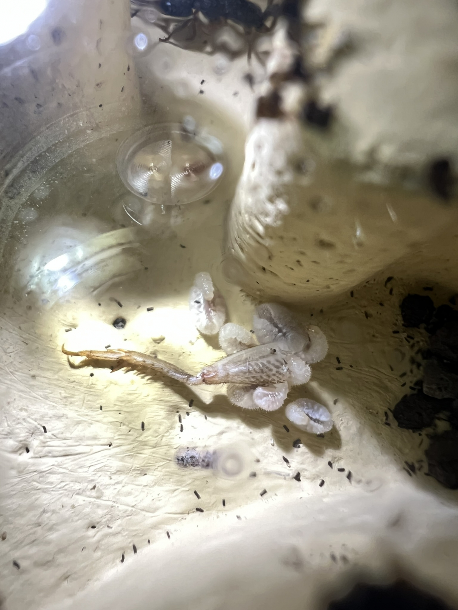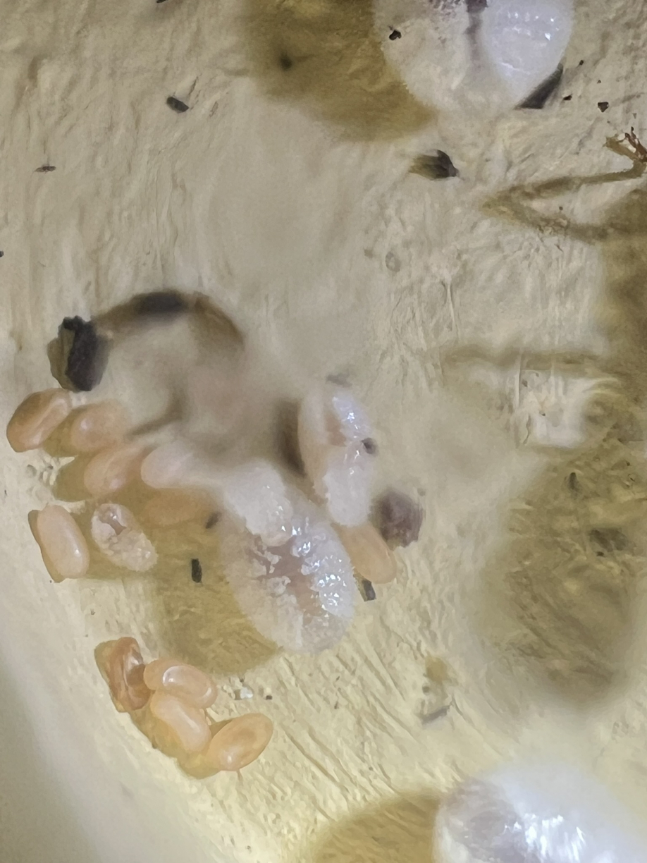 VolkszÀhlung:Brut scheinbar eingegangen am fehlenden/falschen Futter. Jedoch konnte ich bereits neue Eier entdecken seitdem ich wieder auf Heimchen umgestiegen bin.