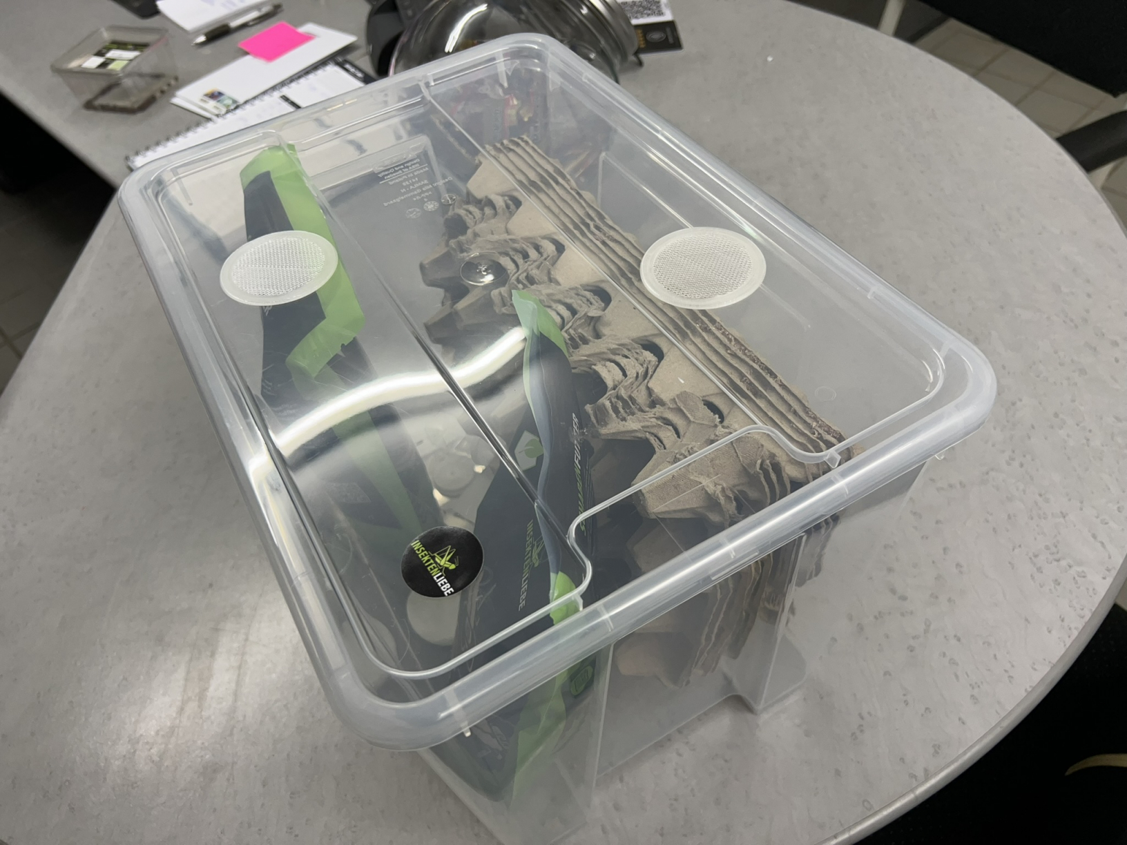 Heute kam das Paket von Insektenliebe mit den 50 Schokoschaben, Terflys sowie zwei Futtertierbox Sets.