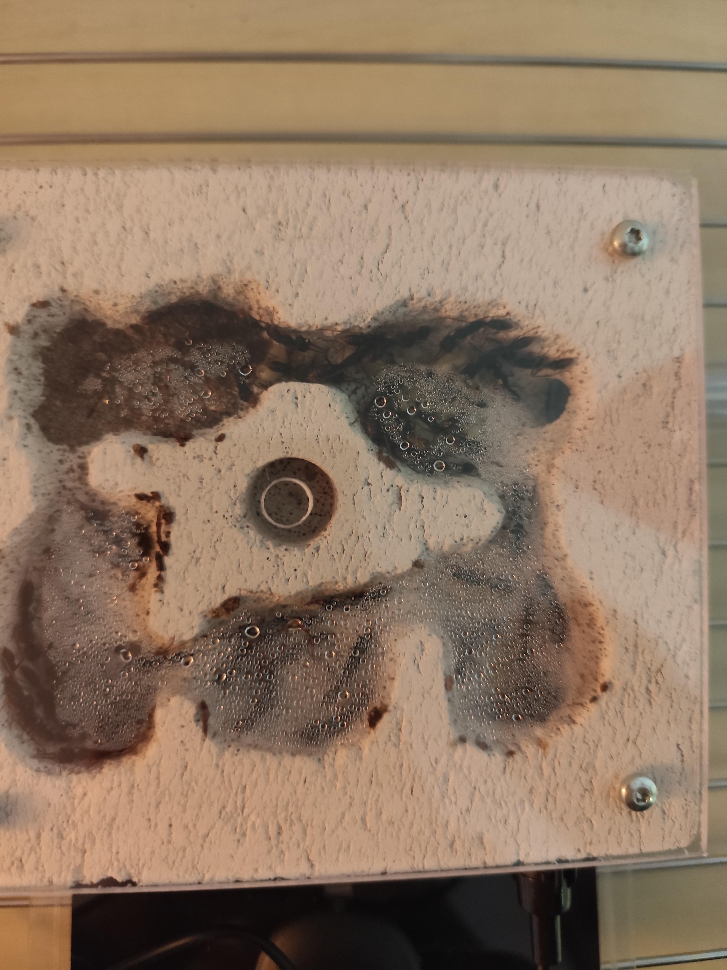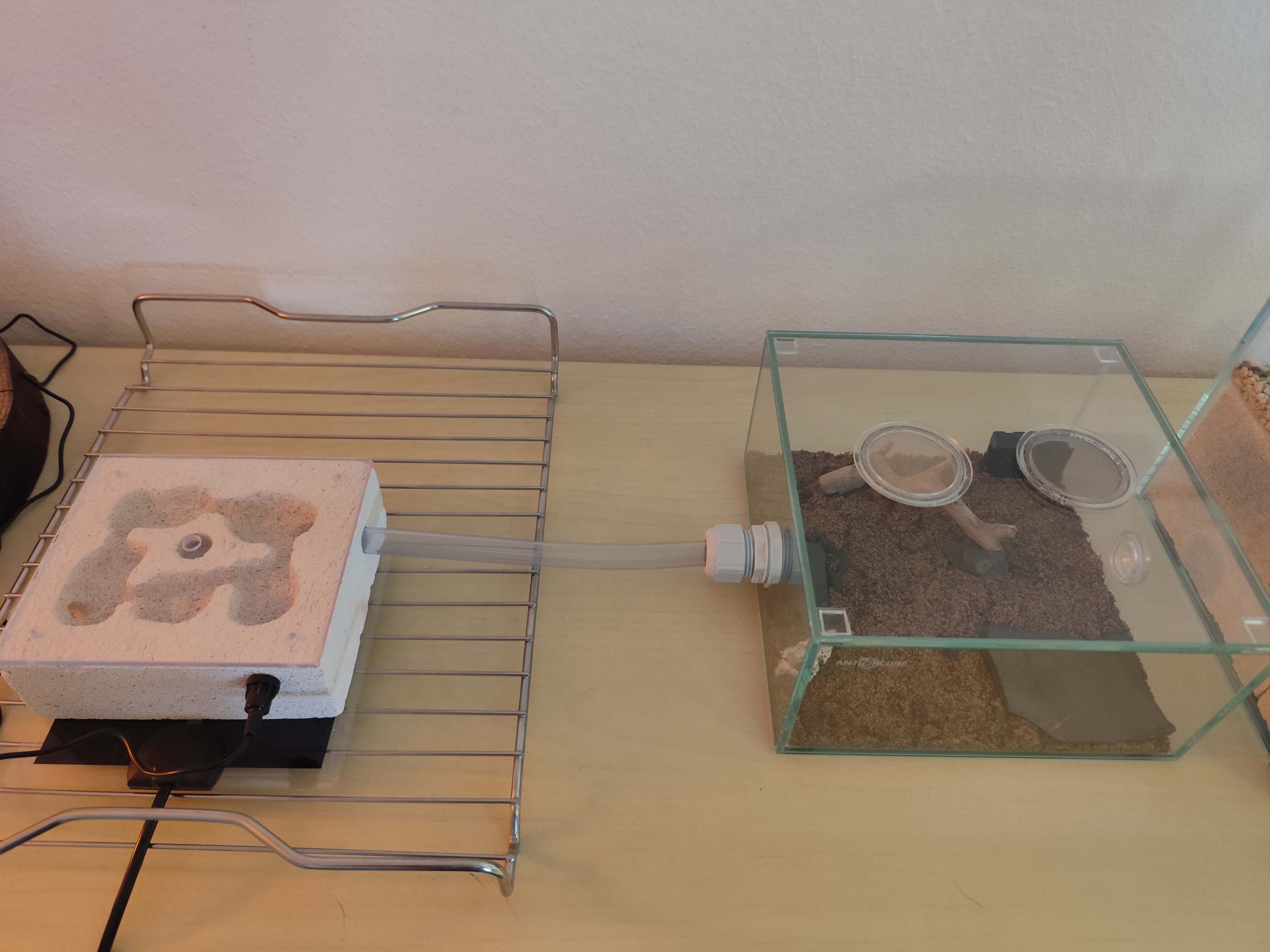 Untergebracht sind sie in einem Becken vom Antstore mit einem selbstgebauten Y-tong Nest. Unter dem Nest ist eine Heizmatte platziert welche das Nest auf ca. 24 Grad heizt. Das Nest ist aber wohl etwas klein geworden, da es laut Verkäufer ca. 10 Arbeiterinnen sein sollten ![]()