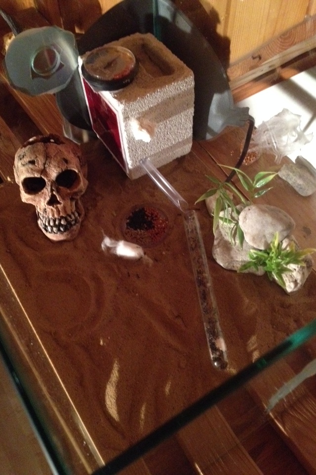 Wie der Titel schon sagt sind 6 Tote Arbeiterinnen in der Arenaecke aufgefunden worde. Die genaue ursache kann ich leider nochnicht ausfindig machen. Vielleicht liegt es an der Heizmatte? Diese wurde seitlich an die Arena gestellt, damit die wärme zum Ytongnest übergehen kann. Gut zu erkennen ist aber das sich die Messors zwischen Glasscheibe und Nest einquartieren. Ich denke sie fühlen sich dort wohl, ansonnsten sollten sie ja nicht freiwillig in diesen Wärmebereich gehen.