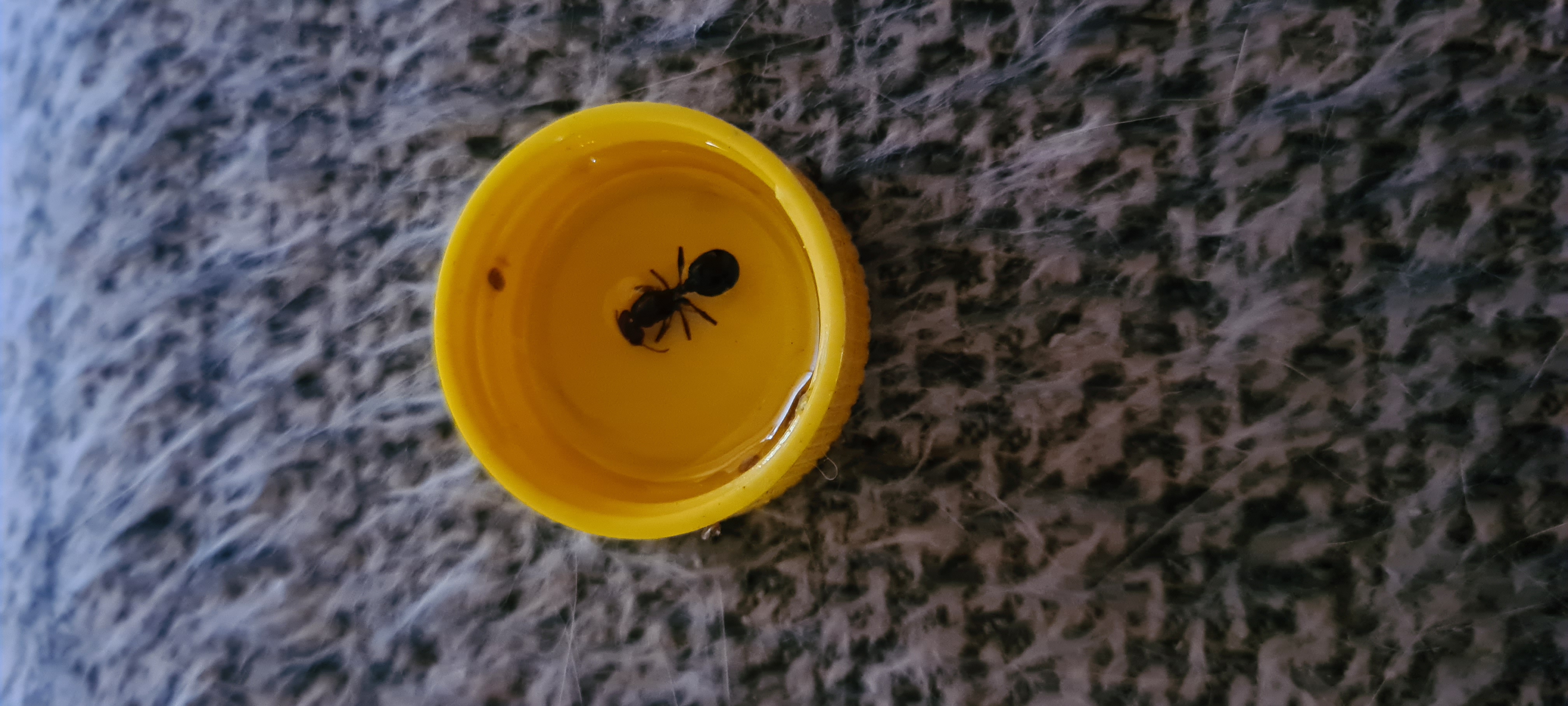 Zudem habe ich ihr auch noch ein Stück Schokoschabe an ihr Reagenz gelegt und das ganze nun in Nachbarschaft zur camponotus maculatus