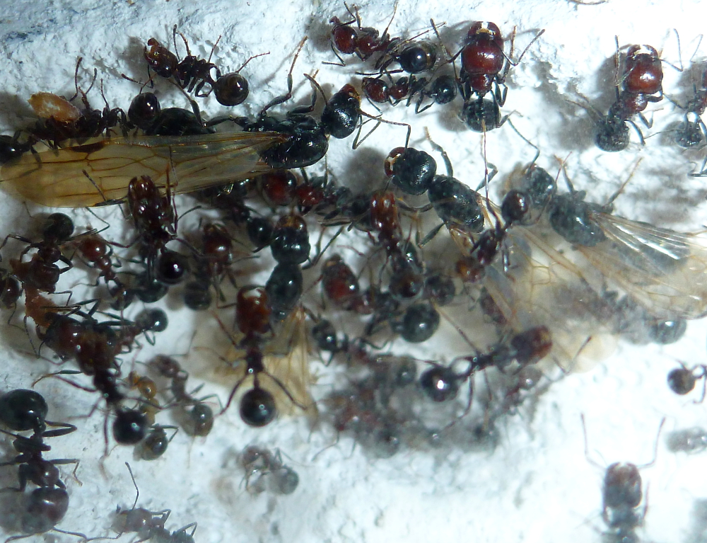 Darüber hinaus habe ich mittlerweile einige Junggynen in der Kolonie, manche von ihnen haben verletzte Flügel oder sie sogar ganz abgeworfen, diese scheinen ganz gewöhnlich bei der Arbeit der Kolonie mitzuhelfen.