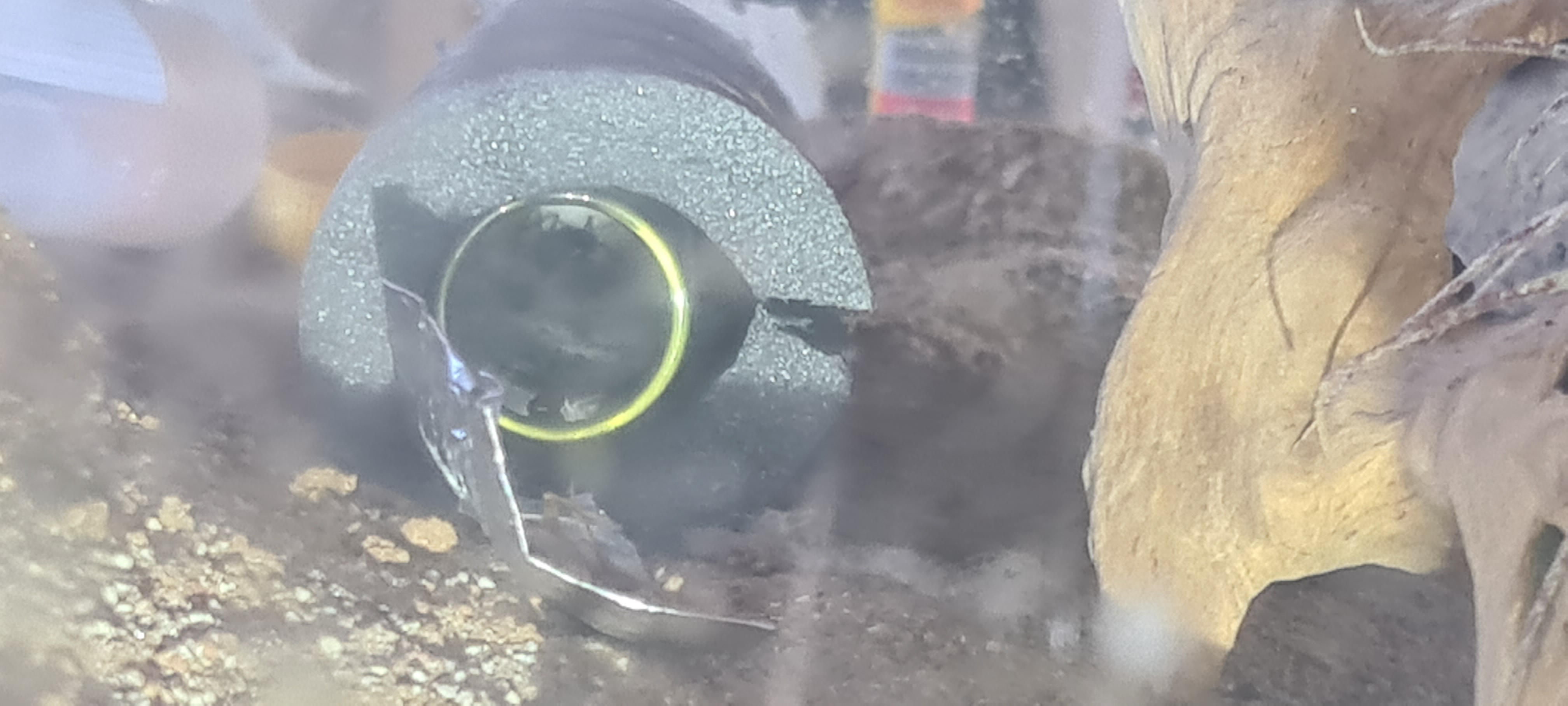 Der Yton ist via einem Plexiglasrohr zugänglich und im Sand versteckt. ein paar Dekosachen wie Äste werden wohl noch kommen aber zu viel nicht.