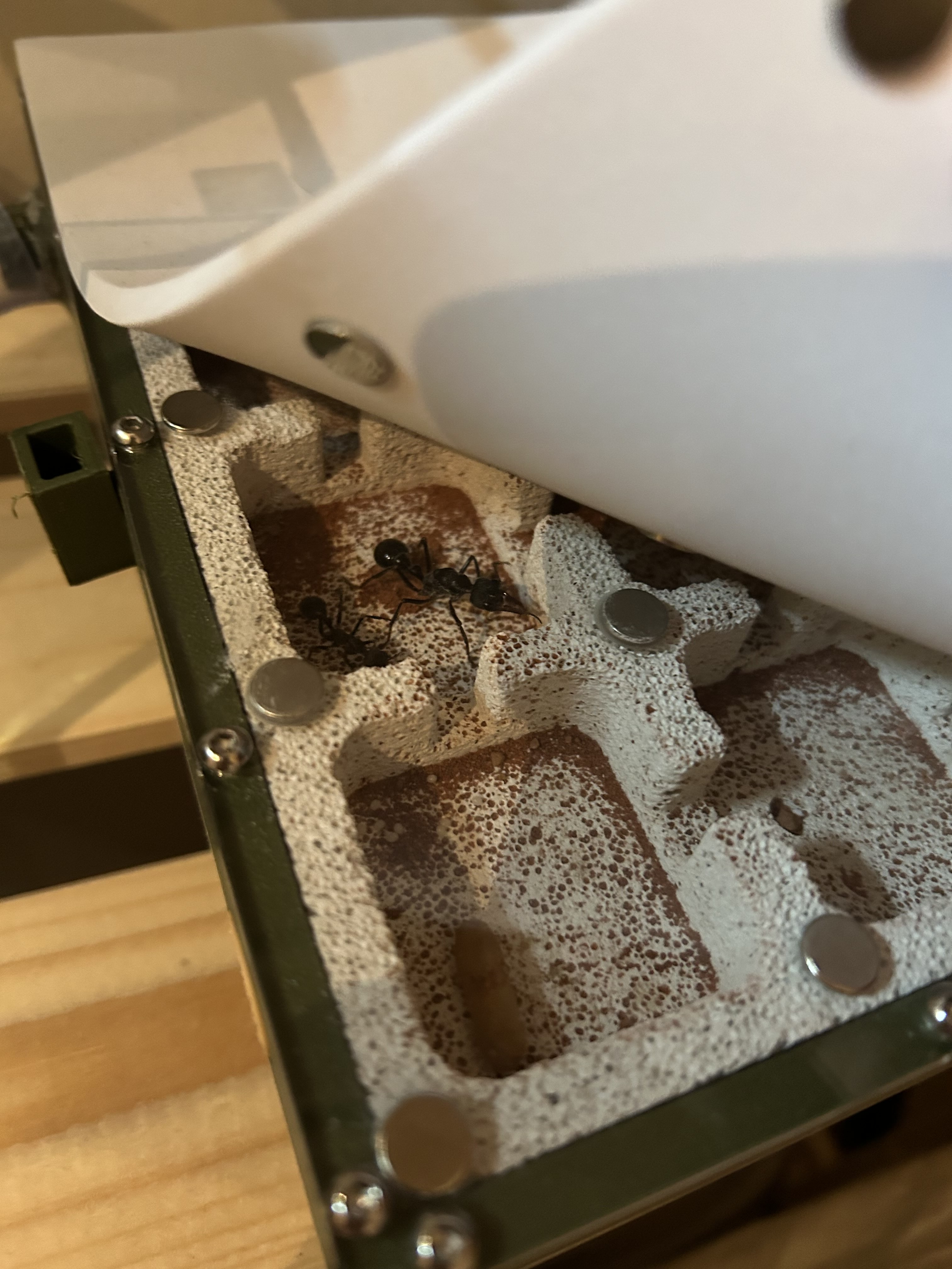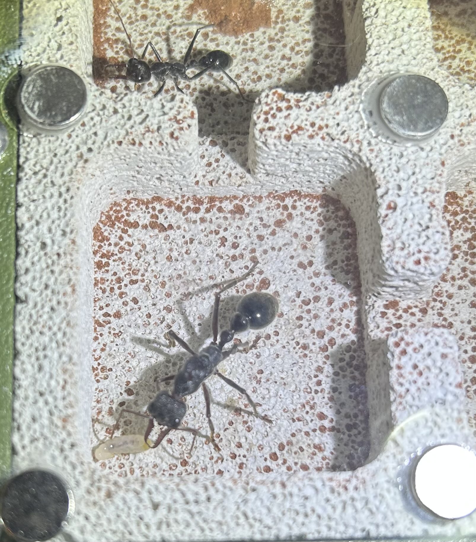 Am 26.04.2025, fast 2 Wochen nach dem Schlupf der ersten Arbeiterin, schlüpfte dann auch die zweite, welche es sich zur Aufgabe machte, die Arena neu zu dekorieren.