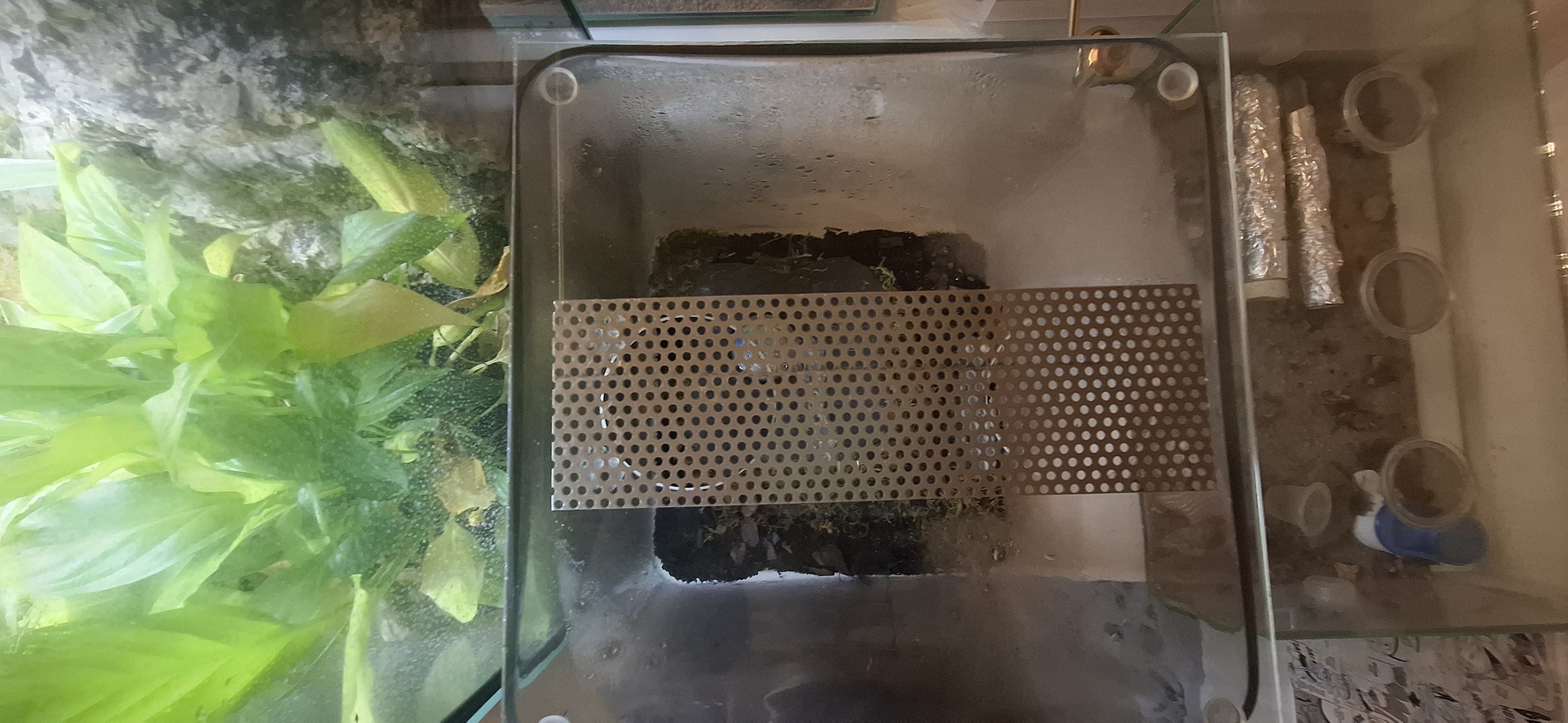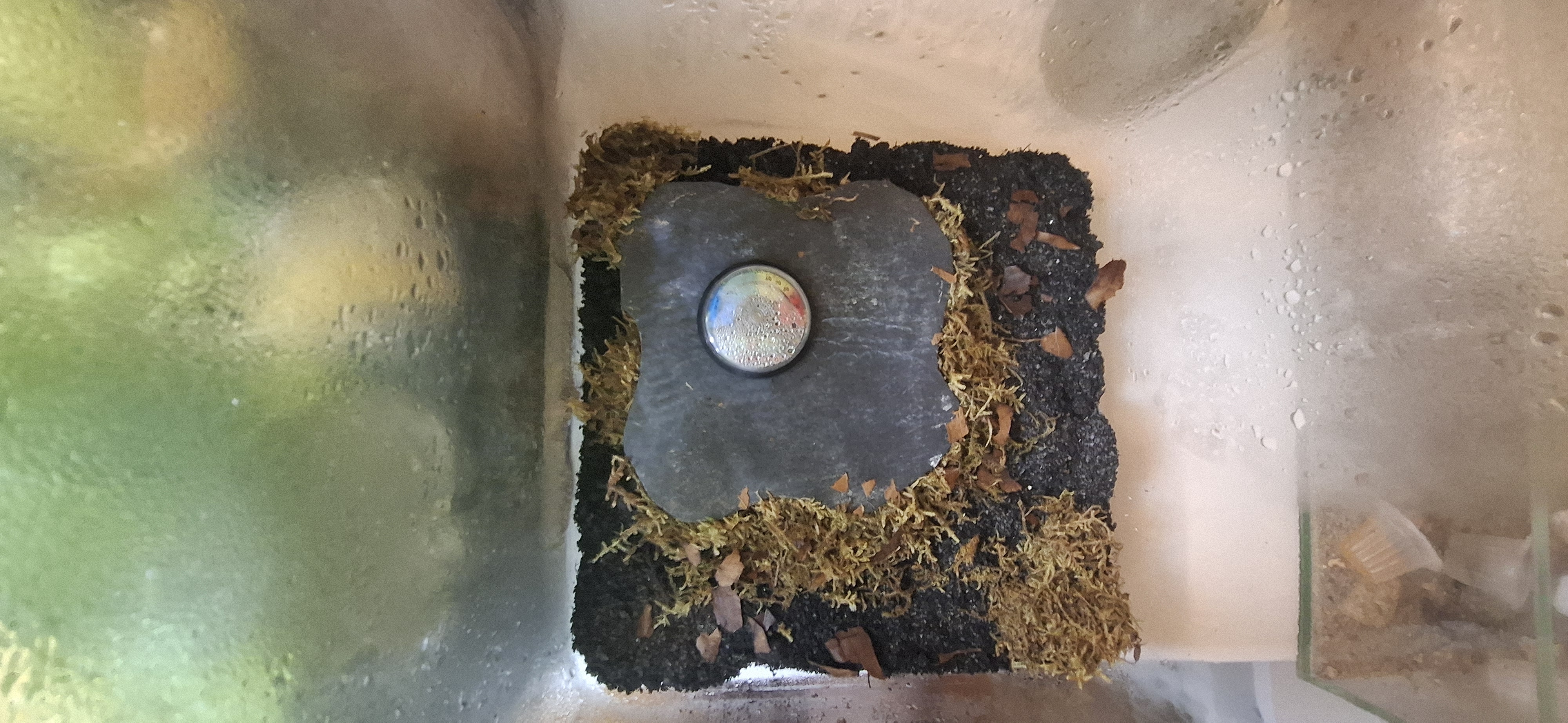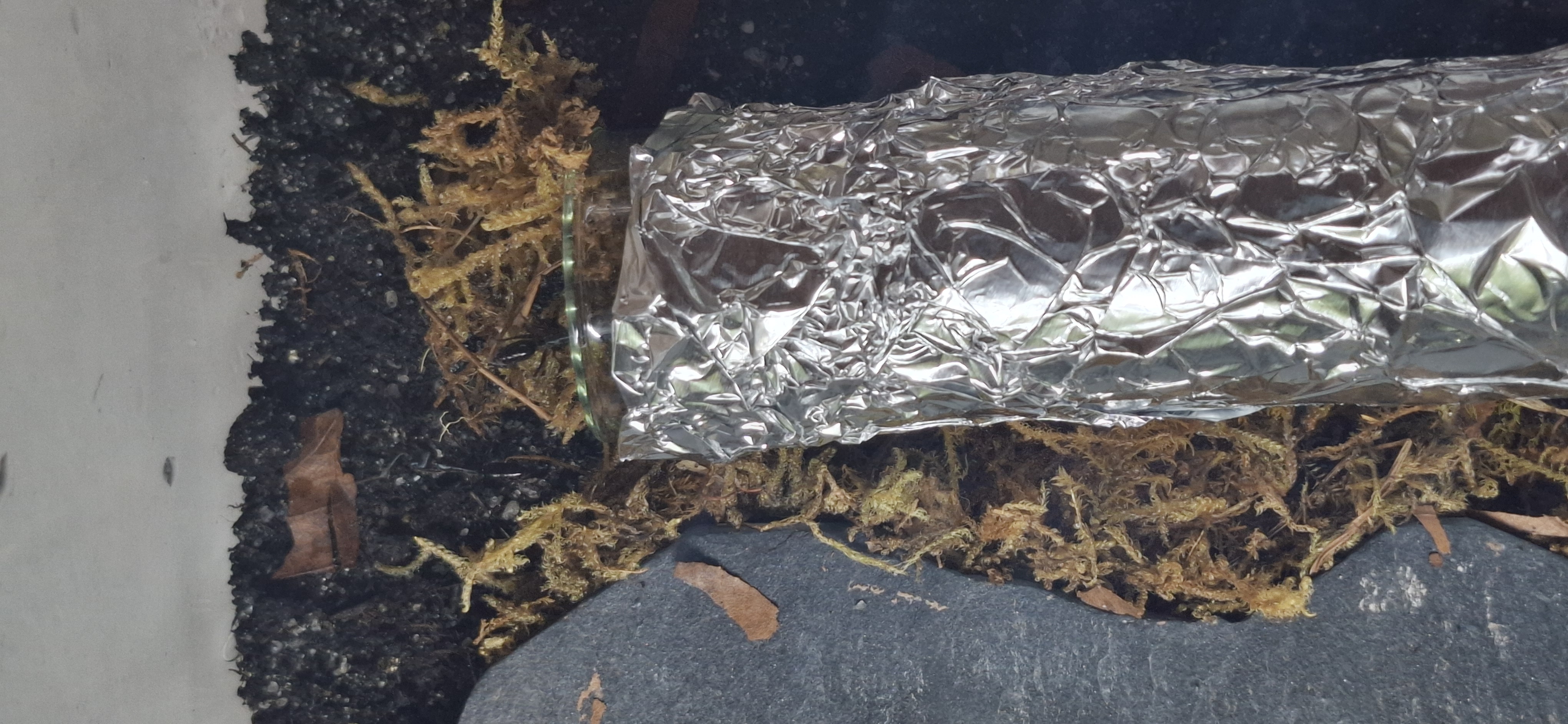 Bald sollte ich meine Lieblinge erhalten. Das bedeutet, dass mein Aufzuchtbecken im Moment gerade noch unbewohnt ist und die Ameisen noch nicht angekommen sind. Mein Glasbecken, in dem die 5-10 Tierchen einziehen werden, hat auf der unteren Seite eine schwache Heizmatte. Diese wärmt allerdings nur den Bereich in dem die Schieferplatte ist. Diese braucht es zwingend da es sonst zu warm wird (an dieser stelle des Bodens). Diesbezüglich habe ich das große Glück, eine Wärmebildkamera ausleihen zu können. Nächstes mal könnt ihr dann hoffentlich sehen, wie die Wärmeverteilung in meinem Becken ist.