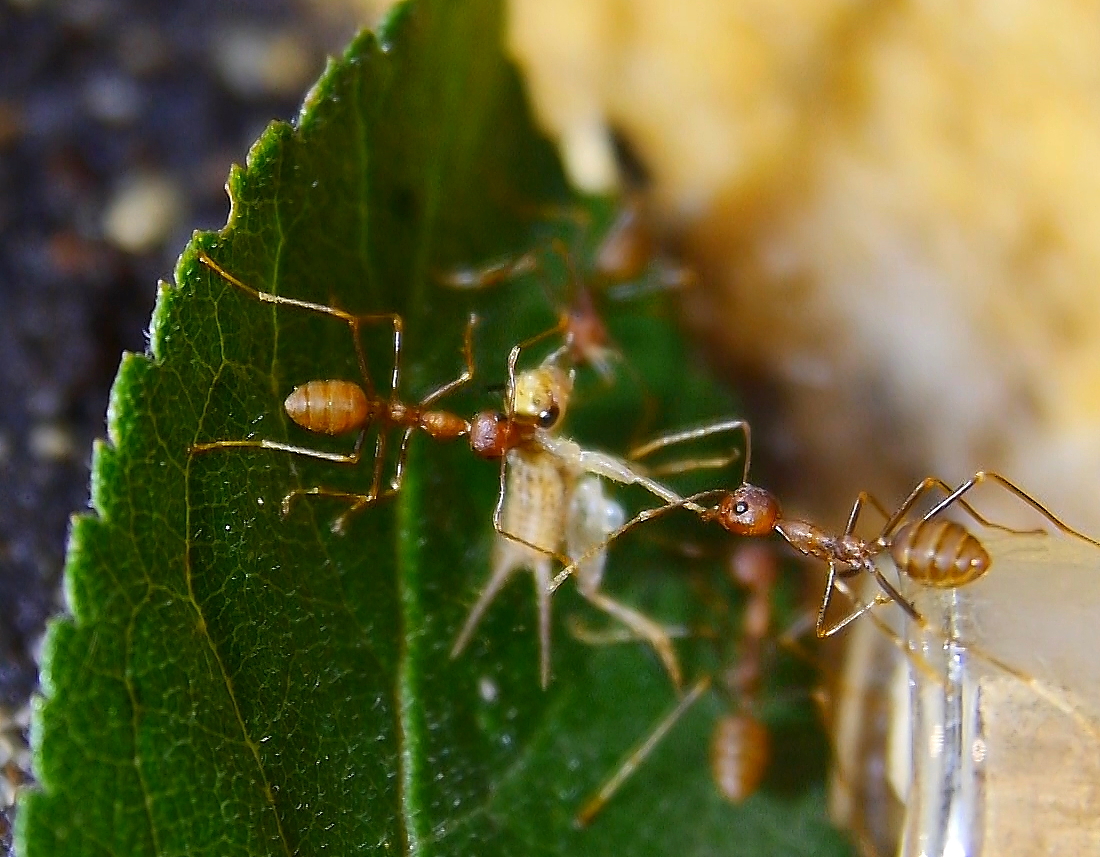 Oecophylla smaragdina sing regelrecht begeistert vom puren Honig.