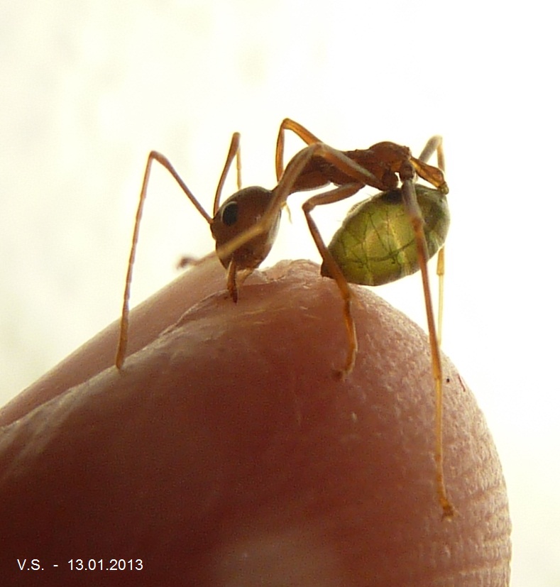 Auch die dicke Smaragd-Schönheit konnte ich mal wieder sichten, nachdem viele der Arbeiterinnen nicht mehr die Sicht in den Plastik-Eimer versperren,