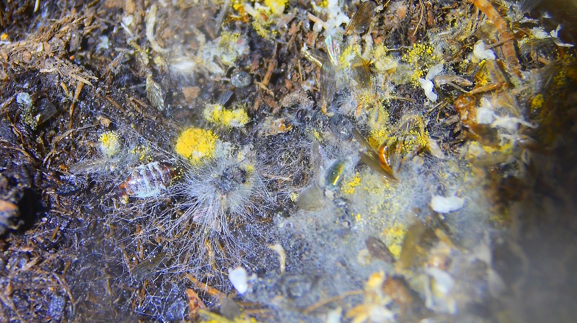 Frisch gehäutete Mehlkäferlarven wandern zusätzlich ins Nest.