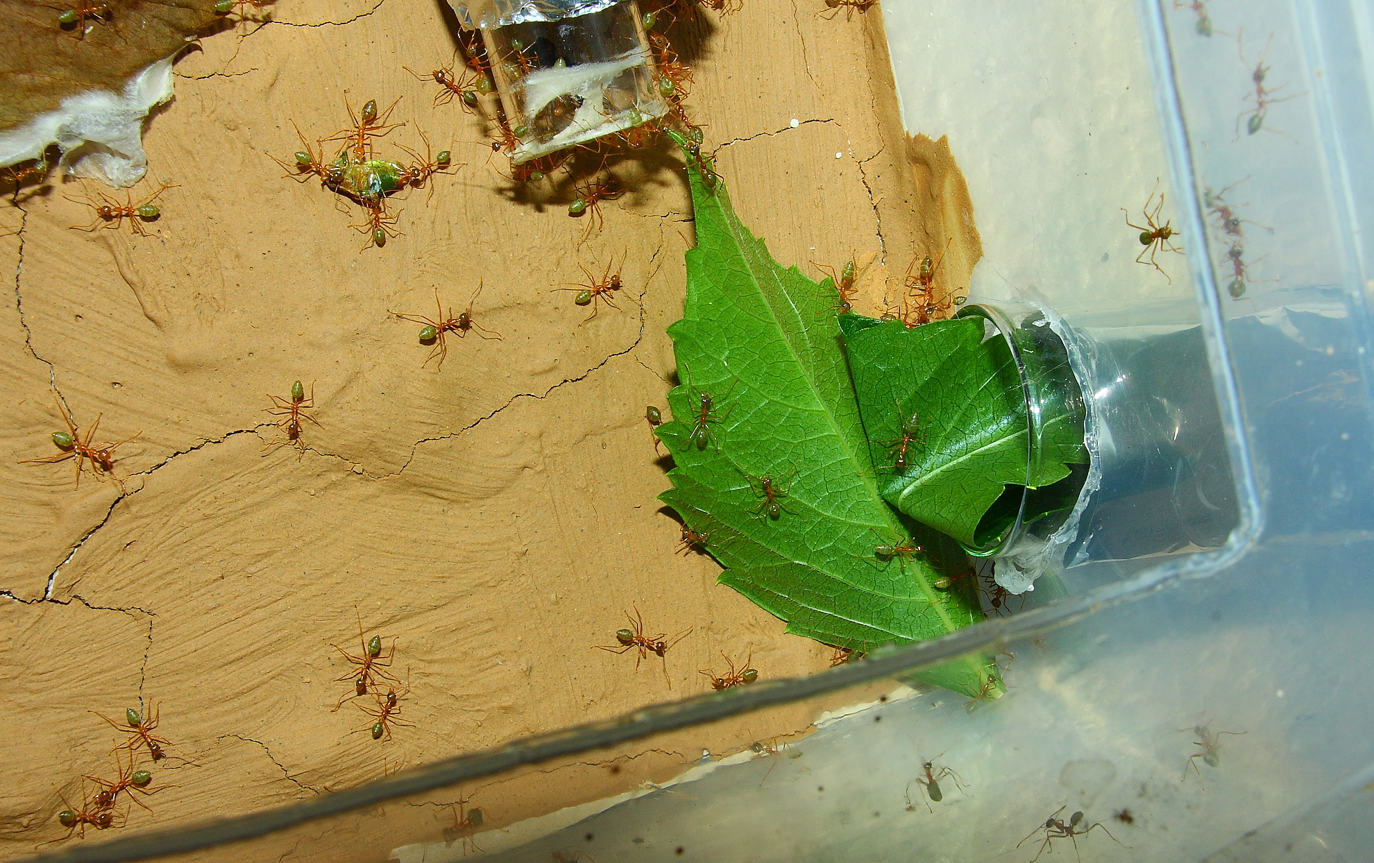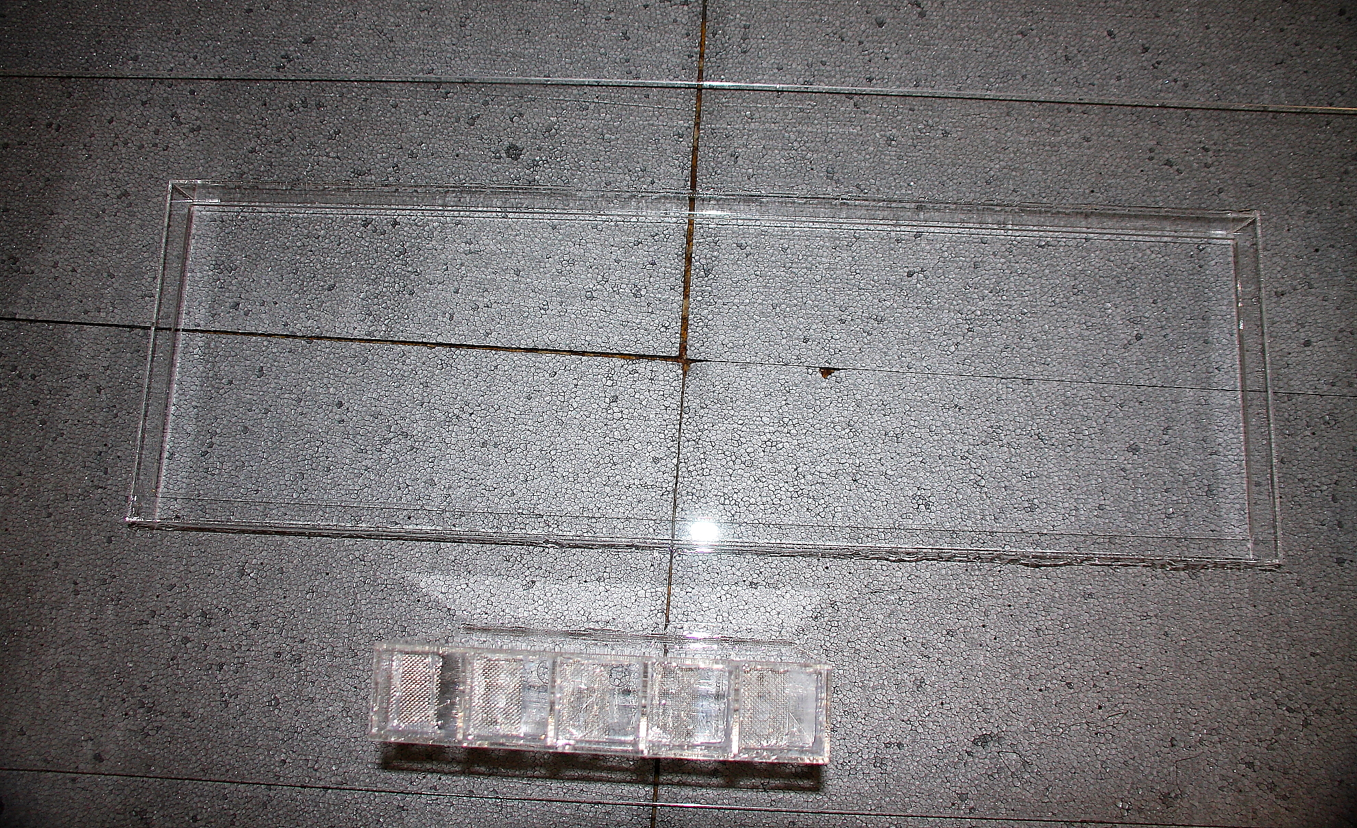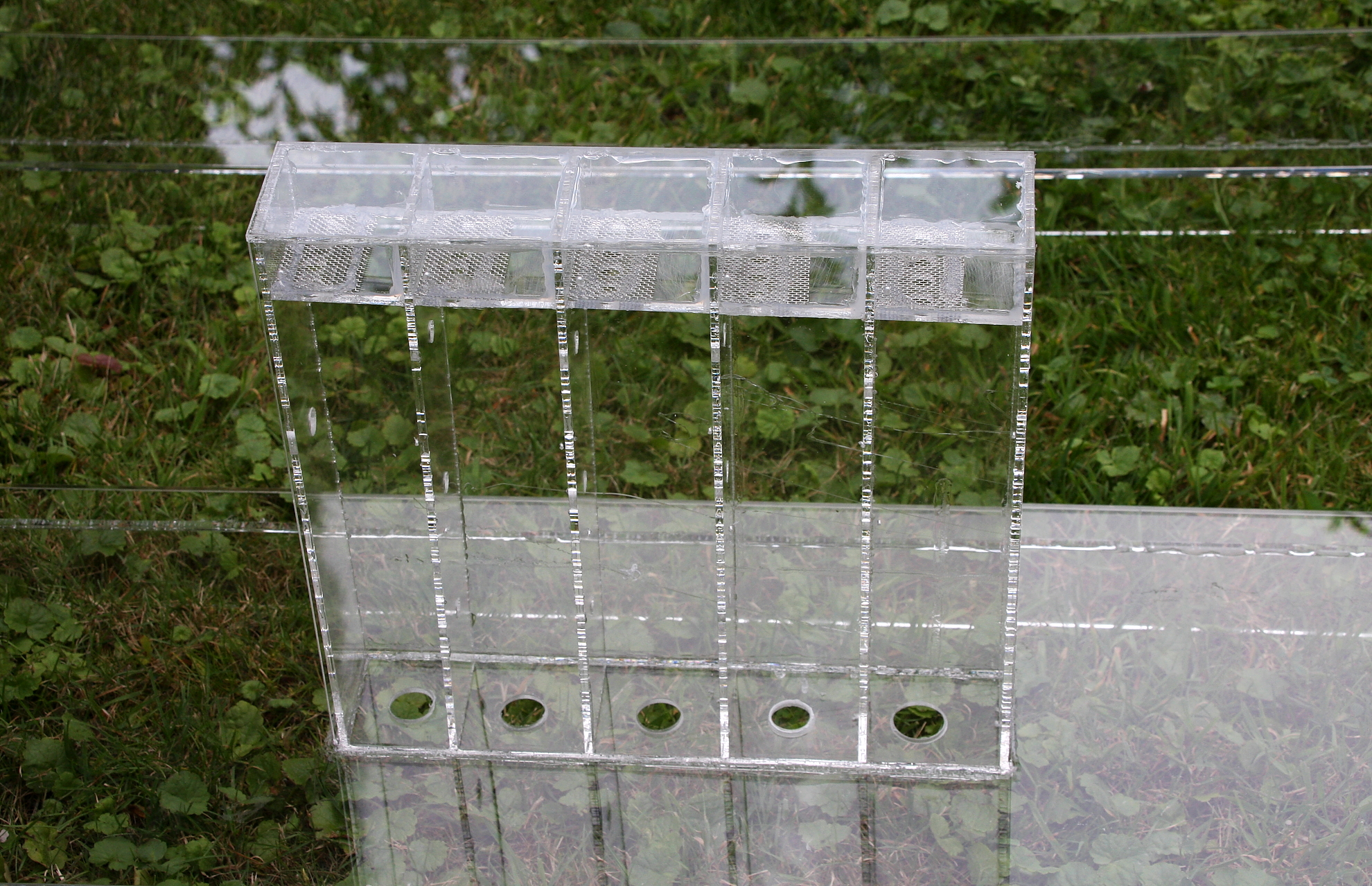 Zwischen Tanks und Nestkammern sorgt eine dünnes Metallgitter dafür das keine Ameisen ins Wasser gelangen können.