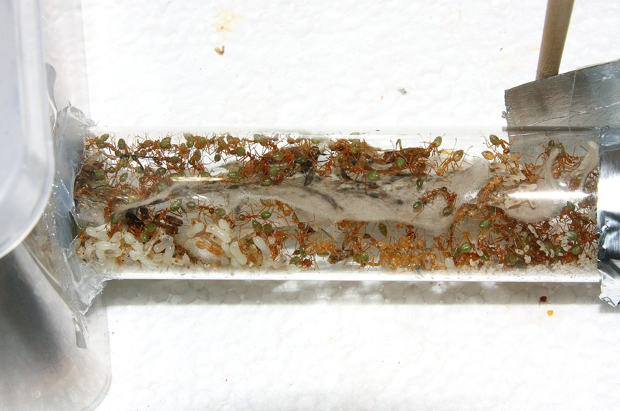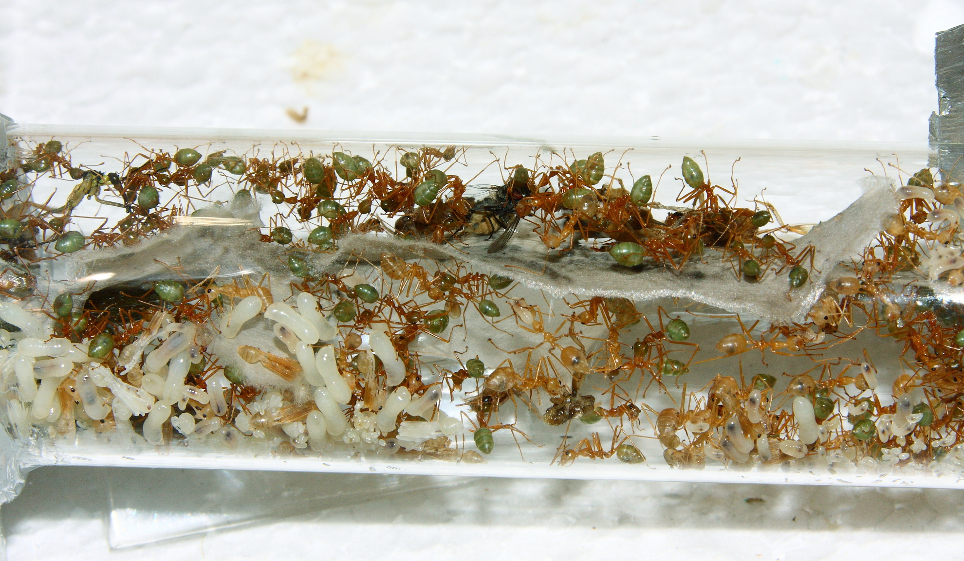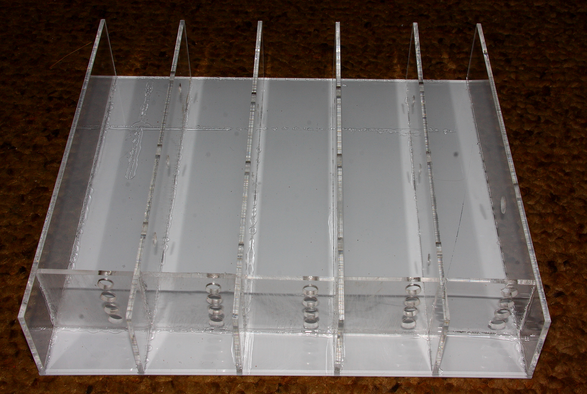 Zwischen Tanks und Nestkammern sorgt eine dünnes Metallgitter dafür das keine Ameisen ins Wasser gelangen können.