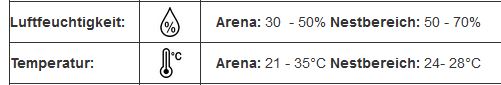 Höhere Temperaturen müssen sein sowohl im Nestbereich wie in der Arena.