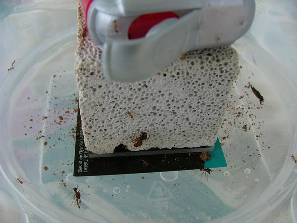Die Ameiseninsel ist da viel besser. Die Tiere fallen ins Wasser (aufgr. der Größe dieser Spezies laufen sie nicht auf (!) frischem (!) Wasser) und sind erst mal ausser Gefecht gesetzt - ertrinken jedoch nicht, da sie zunächst noch auf der Oberfläche treiben... <<