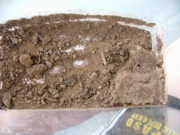 Ich grub weiter, löste Erdbrocken, die mittlerweile hart und trocken waren, nahm die Pinzette, hob sie aus und buchsierte sie in die Plastikschüssel. Wieder wurde die Erde untersucht, Minors, die ich entdeckte wurden wieder eingesammelt (Watte) und kamen zu den anderen